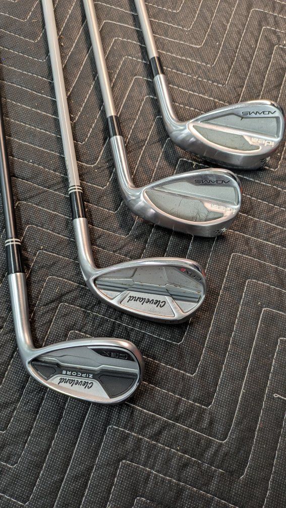 I wanted to find mens senior flex wedges with Graphite shafts but nobody makes them. I found women's clubs are available so I took 3 of these and added 1" length. The 4th is a KBS mens senior flex. They all work perfectly and are in excellent condition. They have Lamkin Crossline 360 like new Grips.
