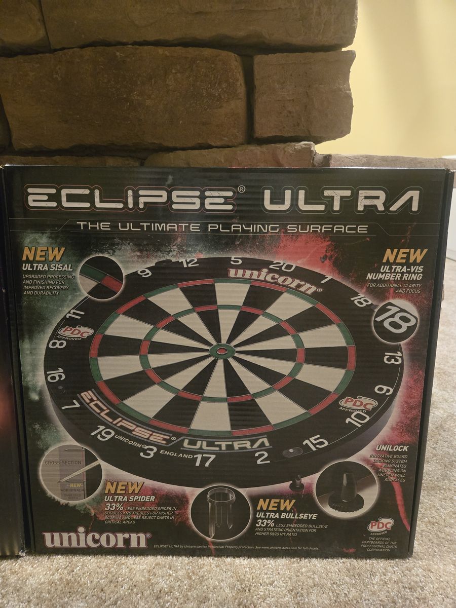 VenmoPremium Steeltip dartboard, Unicorn Eclipse Ultra and Datadart Elite II, new in the box.