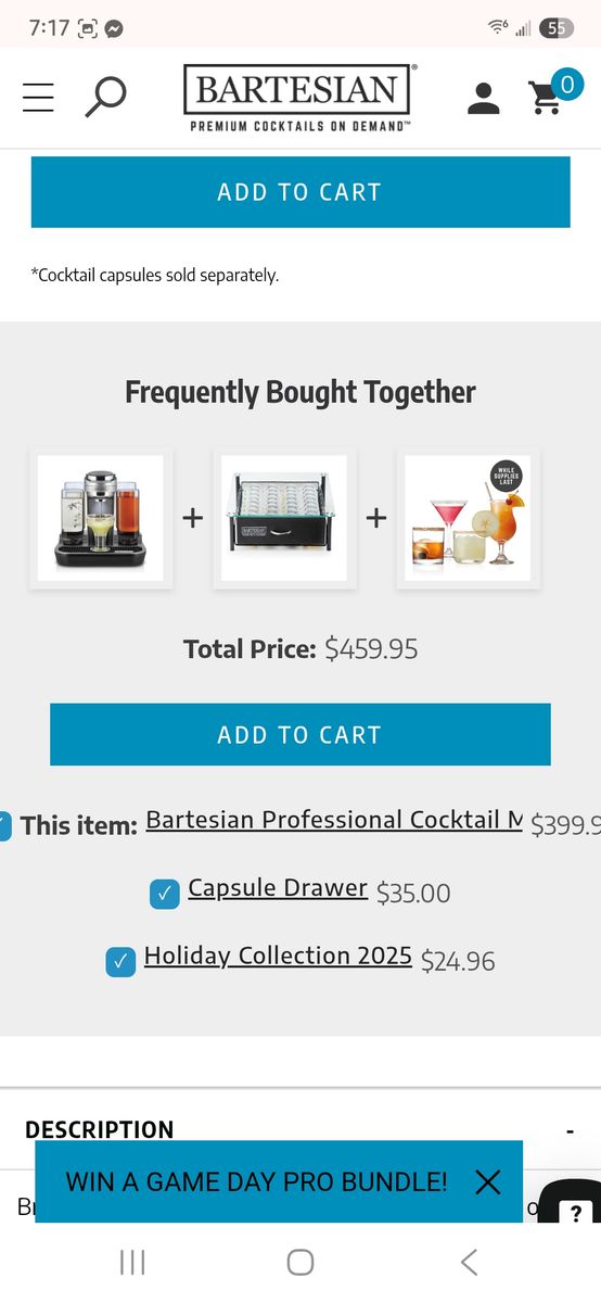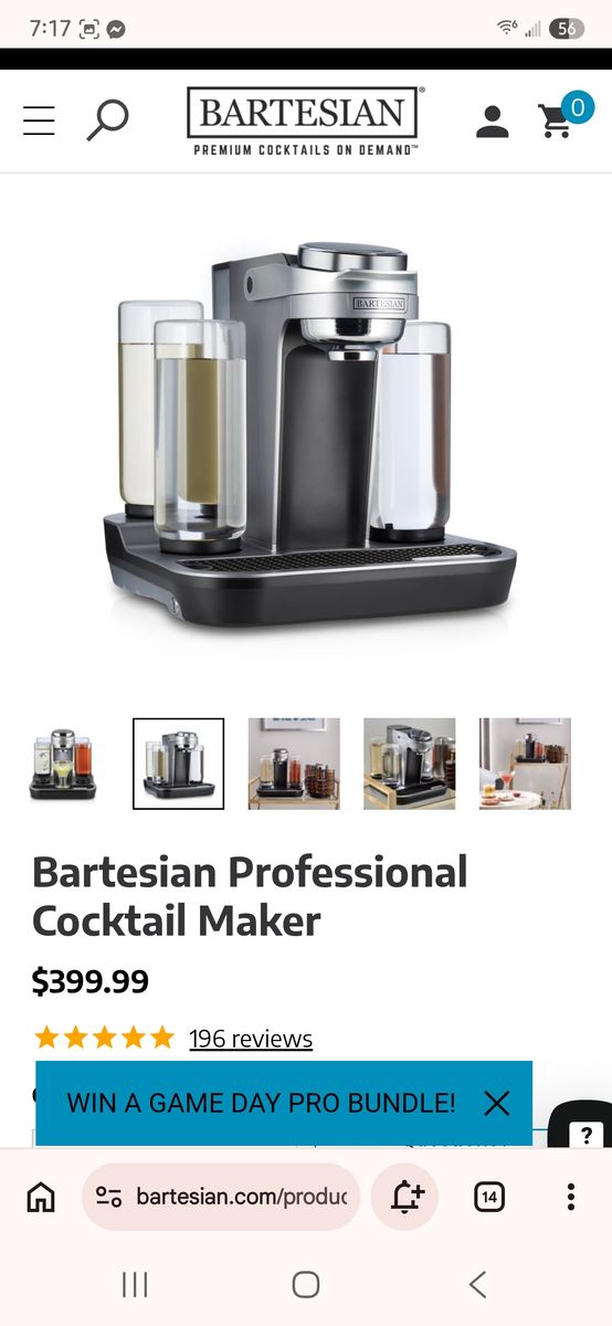 VenmoI have a brand new bartesian cocktail maker that I have used only 2 times. I ended up with 2 of them as gifts for christmas! I love this cocktail maker. It has all 4 bottles to hold tequila, vodka, whiskey and rum/gin. It is the best one they make. I also have the drawer that goes with it to hold and organize all the pods. Im throwing in about 20 starter pods in all varieties of flavors and cocktails for free as well as the drawer. They run around 400$ alone for the machine and the drawer is 35$ by itself and a box of 4 pods is usually around 20$. Im asking 250$ OBO for everything. Please serious buyers only. Feel free to reach out if you have any questions or would like more photos.