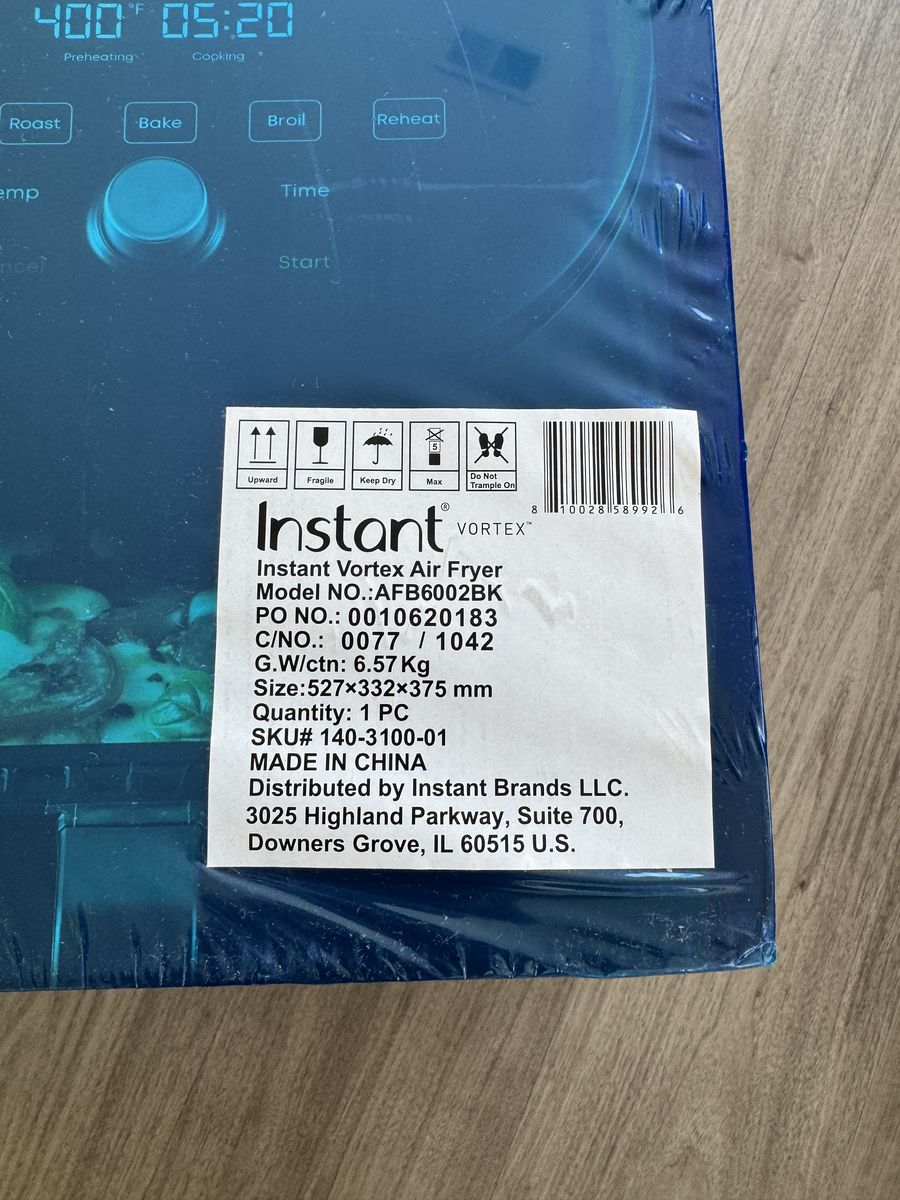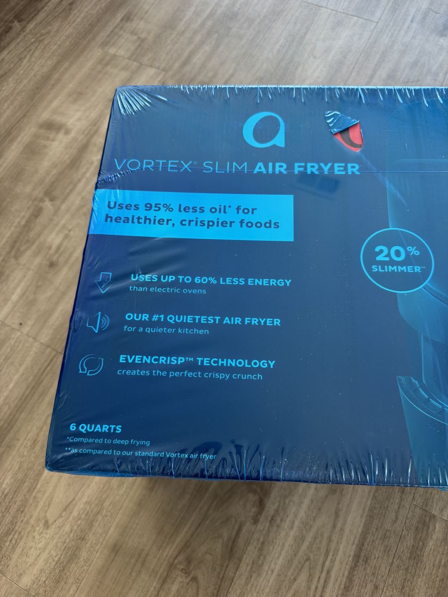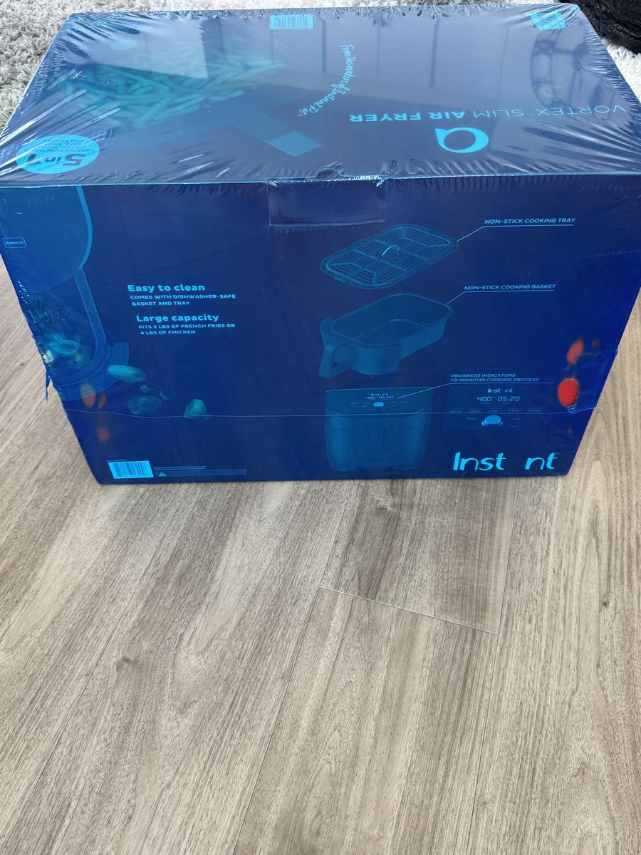 5-in-1 Instant Pot Vortex Slim Air Fryer. Brand new, never opened. 6 qt. Sells for $120.