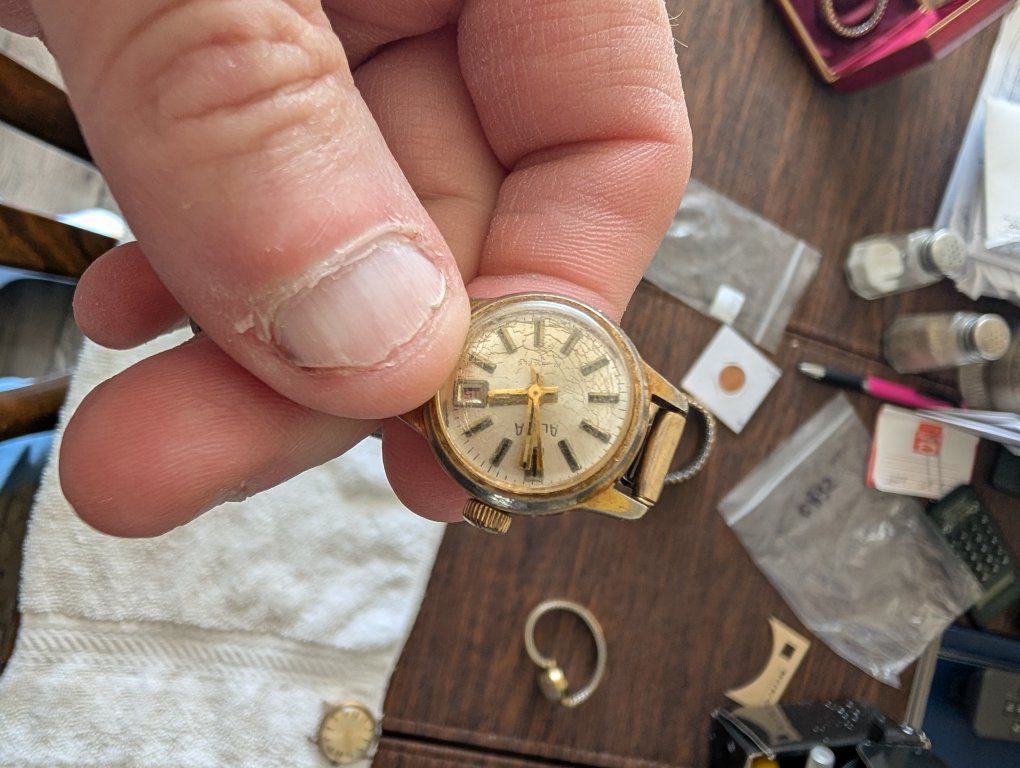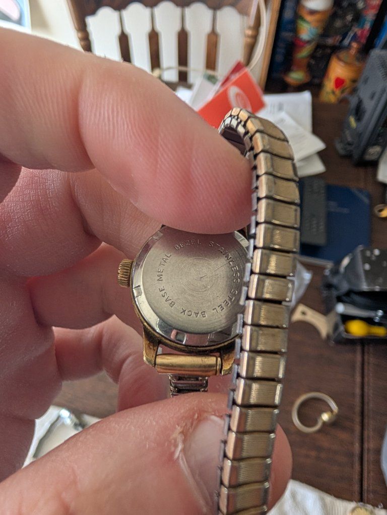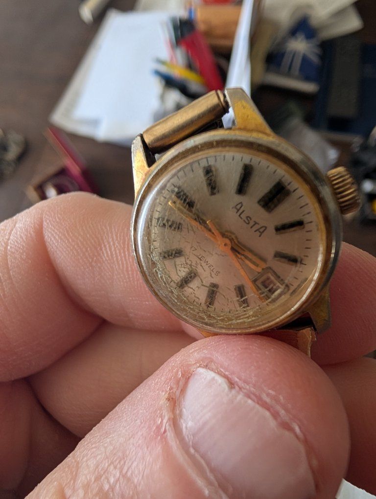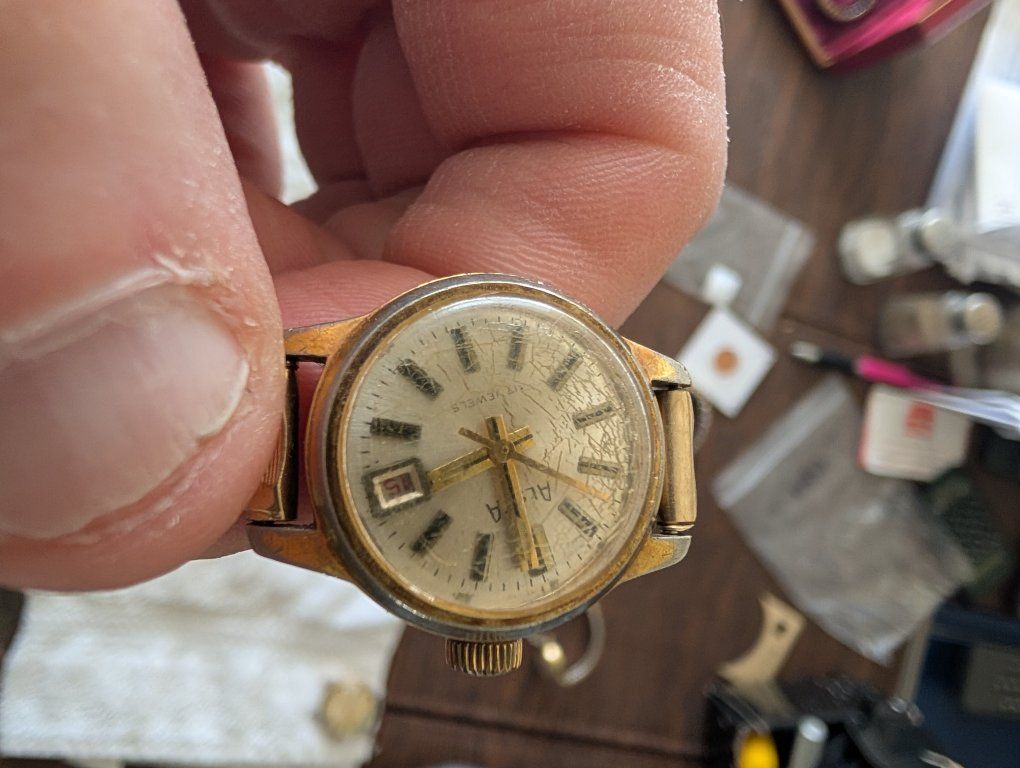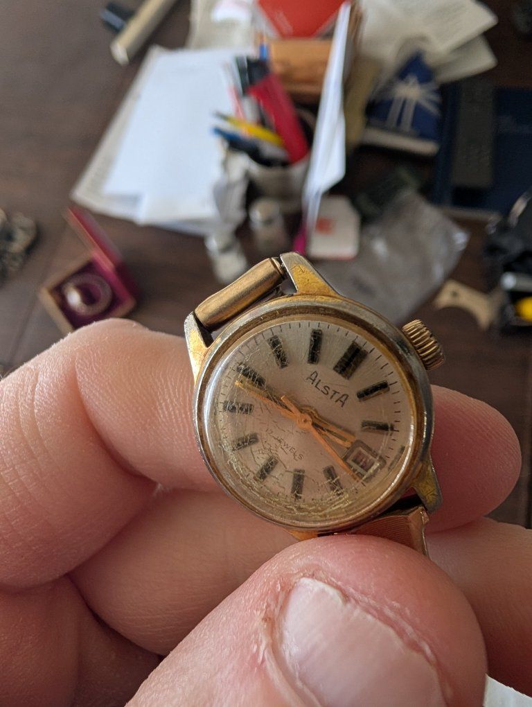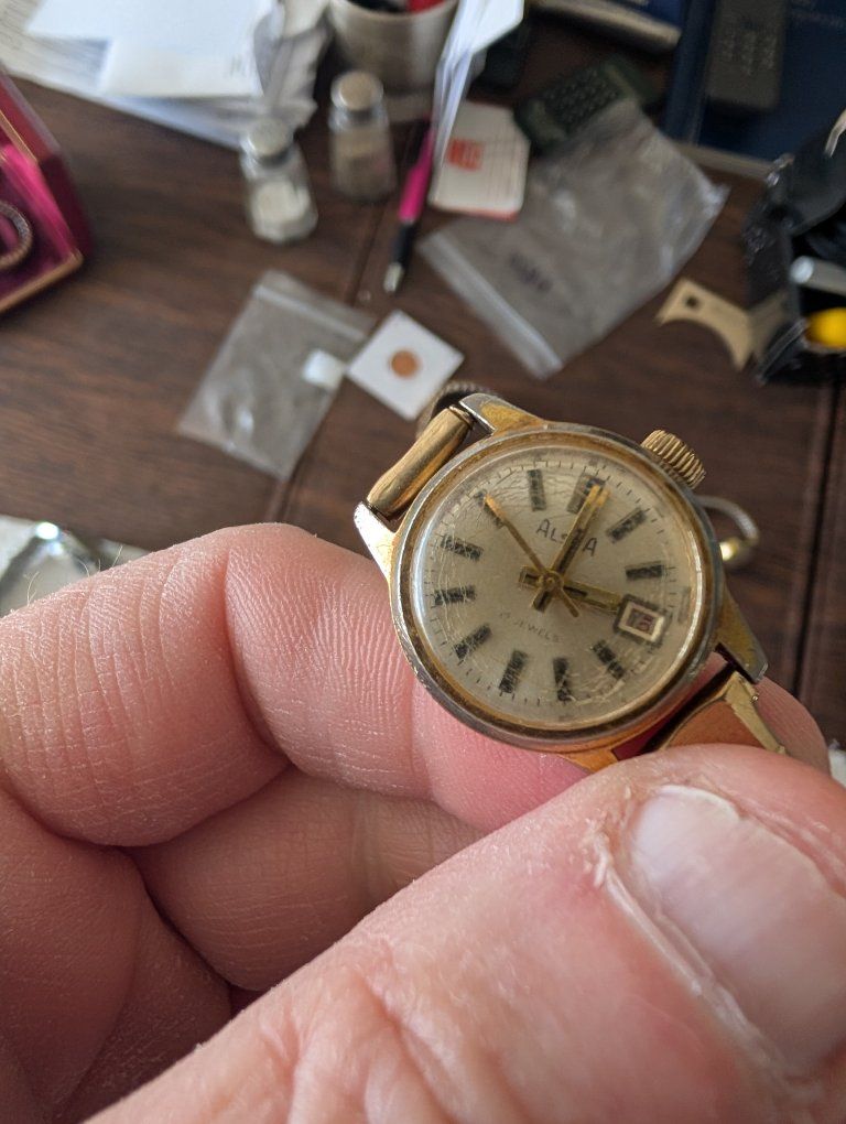 PayPalThe Vintage Alsta Ladies self winding watch with 17 jewels is a classic timepiece perfect for women who appreciate the craftsmanship of traditional mechanical watches. The gold case and band, along with the intricate movement with 17 jewels, exude an air of elegance and sophistication. This wristwatch from the Alsta brand features a fixed gold bezel and an analog display, making it a timeless accessory for any jewelry or watch collection. 100 dollars or best offer. Will world wide.