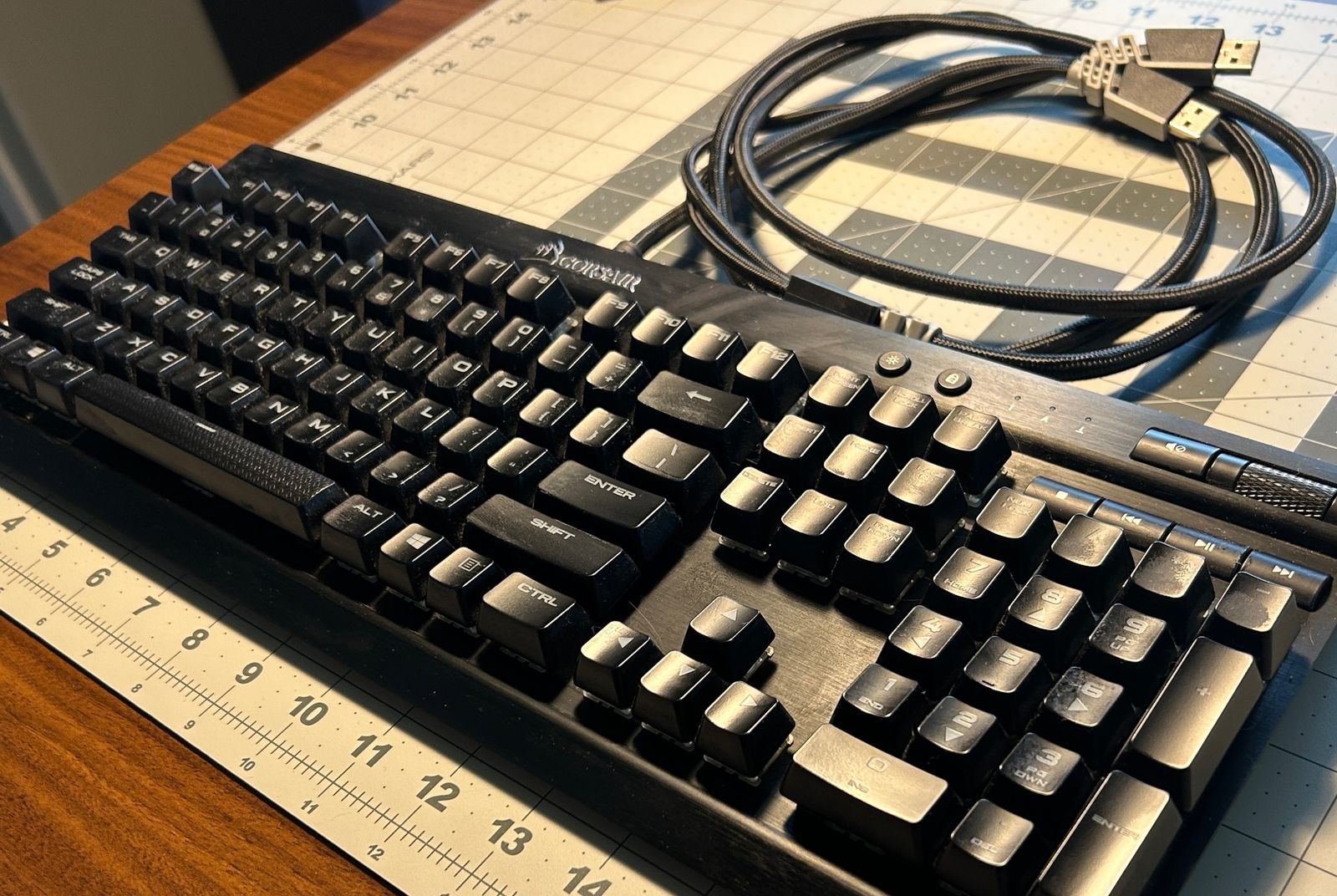 The build quality is legendary, featuring a brushed aircraft-grade aluminum frame that feels incredibly solid and premium on your desk. It also includes the signature Corsair dedicated volume roller and media keys, which are much more convenient than using function shortcuts.