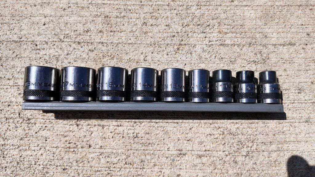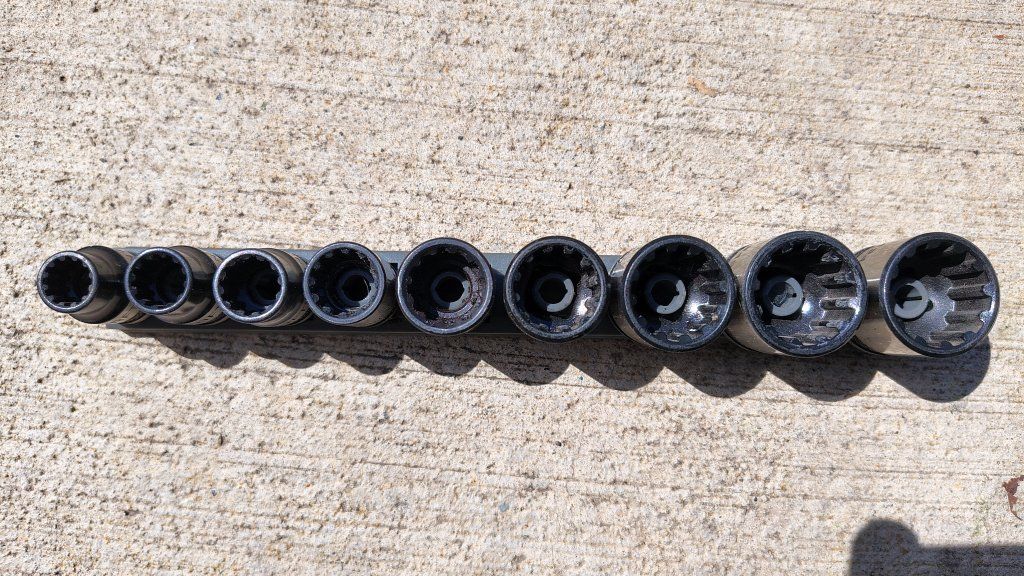 VenmoCraftsman "Industrial Finish" Splined Universal 12PT Metric Socket Set, 10 pieces (8mm to 18mm). Lightly used, comes with holder.