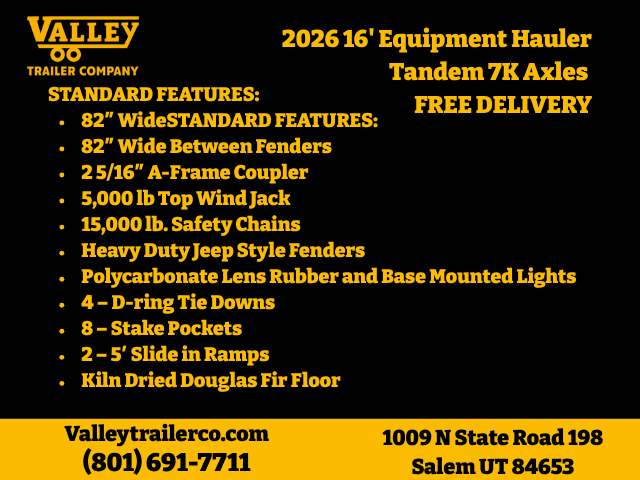 The Snake River Deck-Over Split Tilt Flatbed Trailer is engineered for strength and versatility, built to handle demanding equipment hauling needs. Featuring a 20' deck length with a 16' hydraulic cushion tilt section and 4' stationary platform, it boasts a 15,400 lb GVWR, 10,840 lb payload capacity, and a 102" wide deck. Its rugged construction includes a 2" x 5" x 1/4" heavy-wall tube frame, 3" C-channel crossmembers, and kiln-dried Douglas Fir decking for lasting durability. Dual 7K premium Lippert brand torsion axles with heavy-duty electric brakes, a bolt-on 12K drop-leg jack, flush mount or recessed LED stop, turn, clearance lighting, and a PPG 2-stage paint finish make this trailer a dependable, professional-grade solution for loading and transporting equipment with ease.