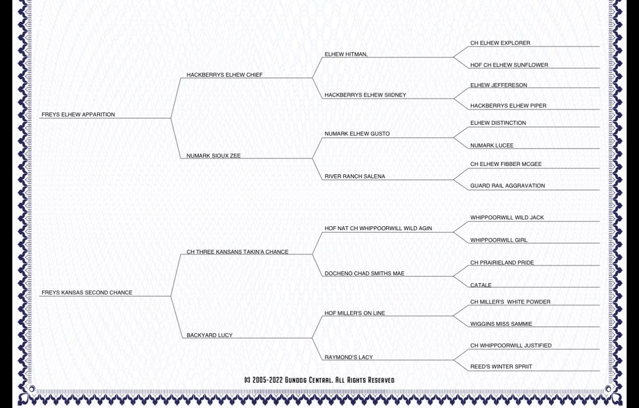 Both parents are FDSB/UKC DNA Purple Ribbon from proven Elhew Hitman/Jefferson/Fibber/Guardrail x Miller Online/Wild Again lines. The female’s dam has horseback trial placements, and the female’s sire is a Field Champion. He also competes in dock dog diving.