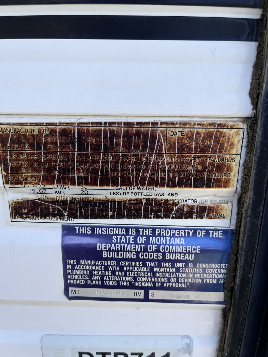 1996 S&S pickup camper out of Montana. Clean title in hand! $4k OBO.