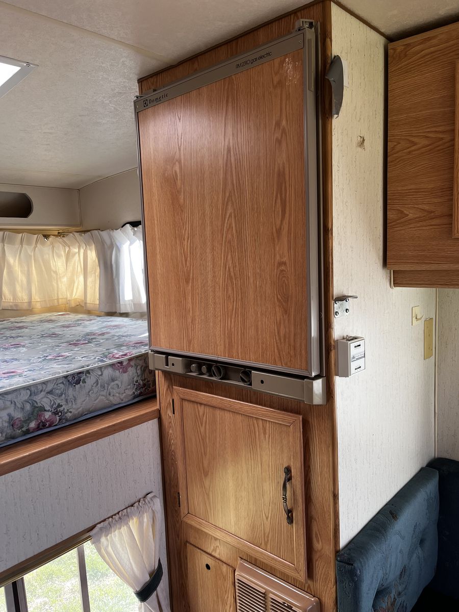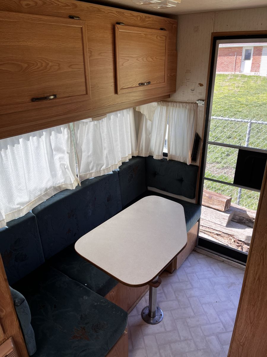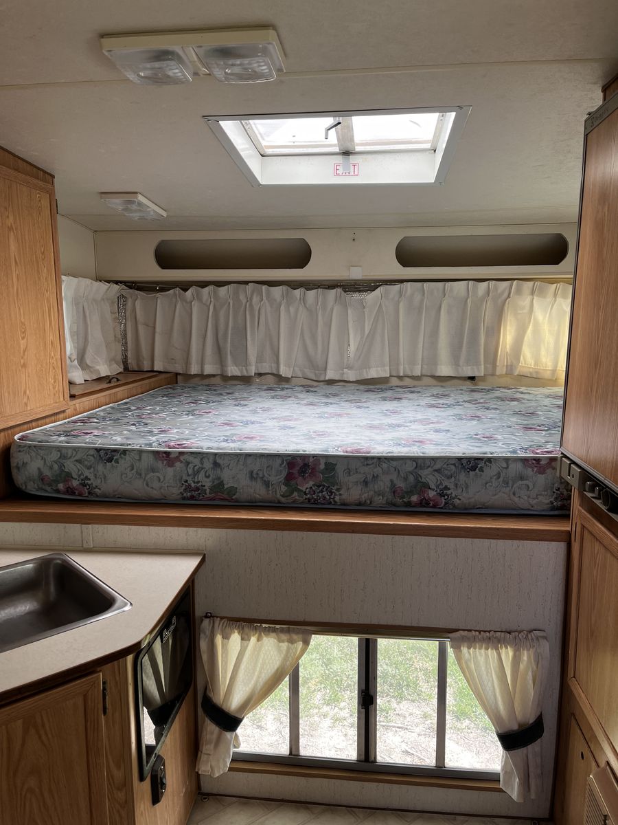 In good condition interior and out. I replaced the water pump. The floor is fully insulated so it is great for extended seasons well into fall weather. Sink and stove work great, as does the bathroom and shower. Has external shower set up as well.
