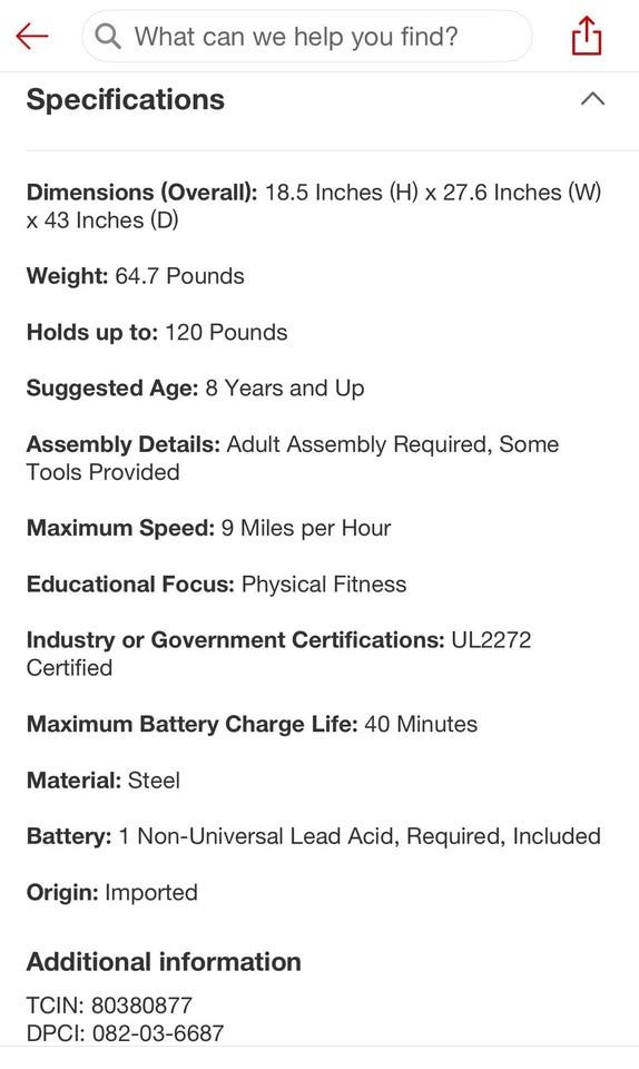 ApplePayNew in box, has been pulled out and put back in. Kids 8+ and under 120 lbs. Was a friends that didn’t use and now can’t return. They maybe rode it a few times. Retails for $399 at Target. No holds unless Venmo.