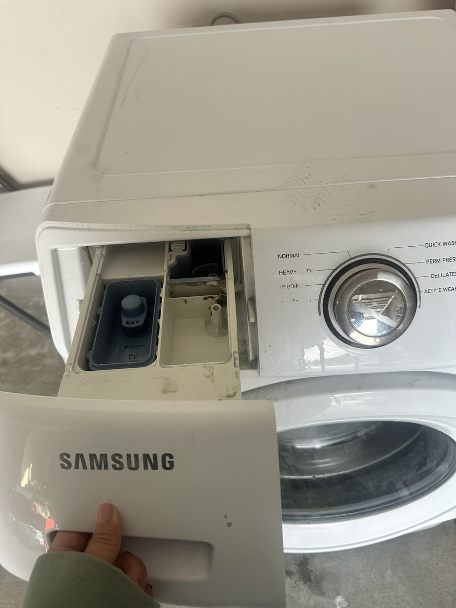 Needs cleaning! water comes out of the front load not sure why. Still ashes great