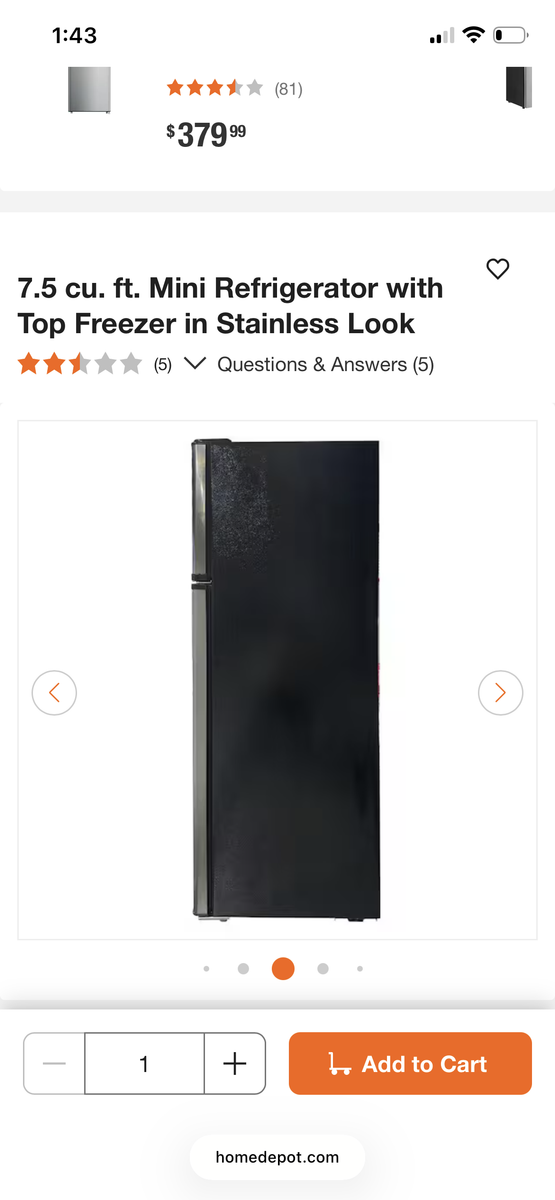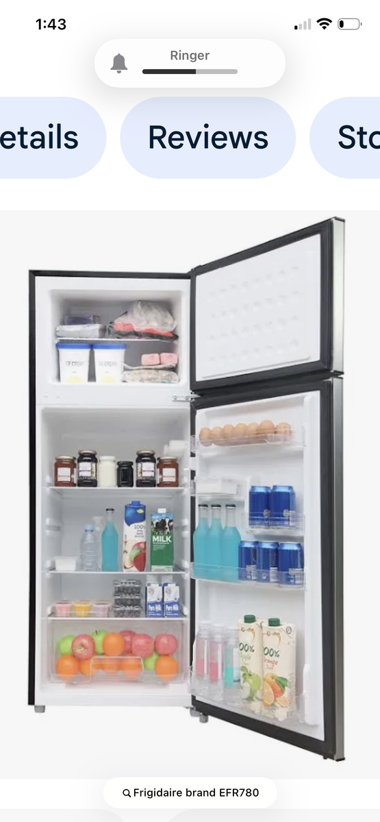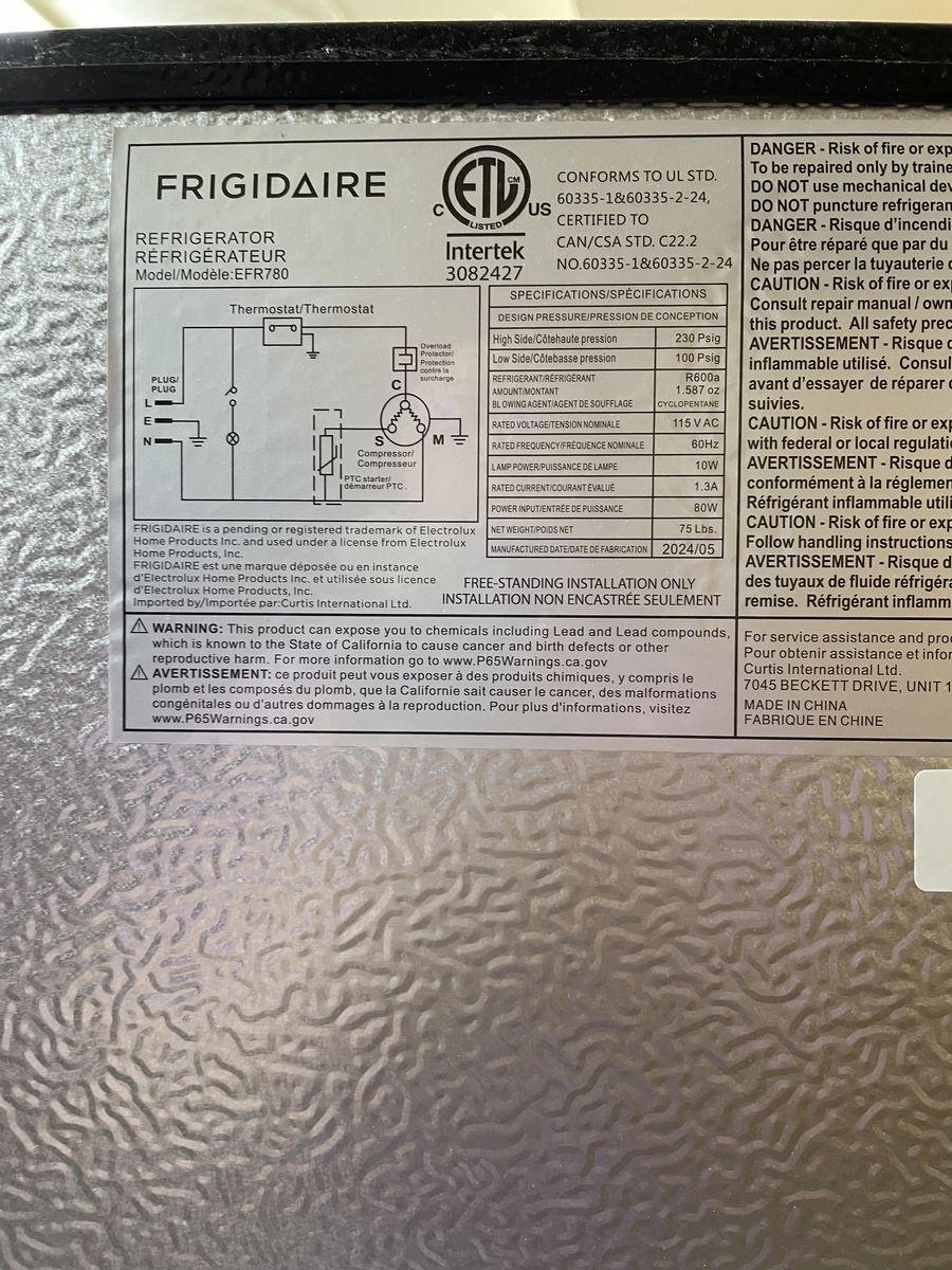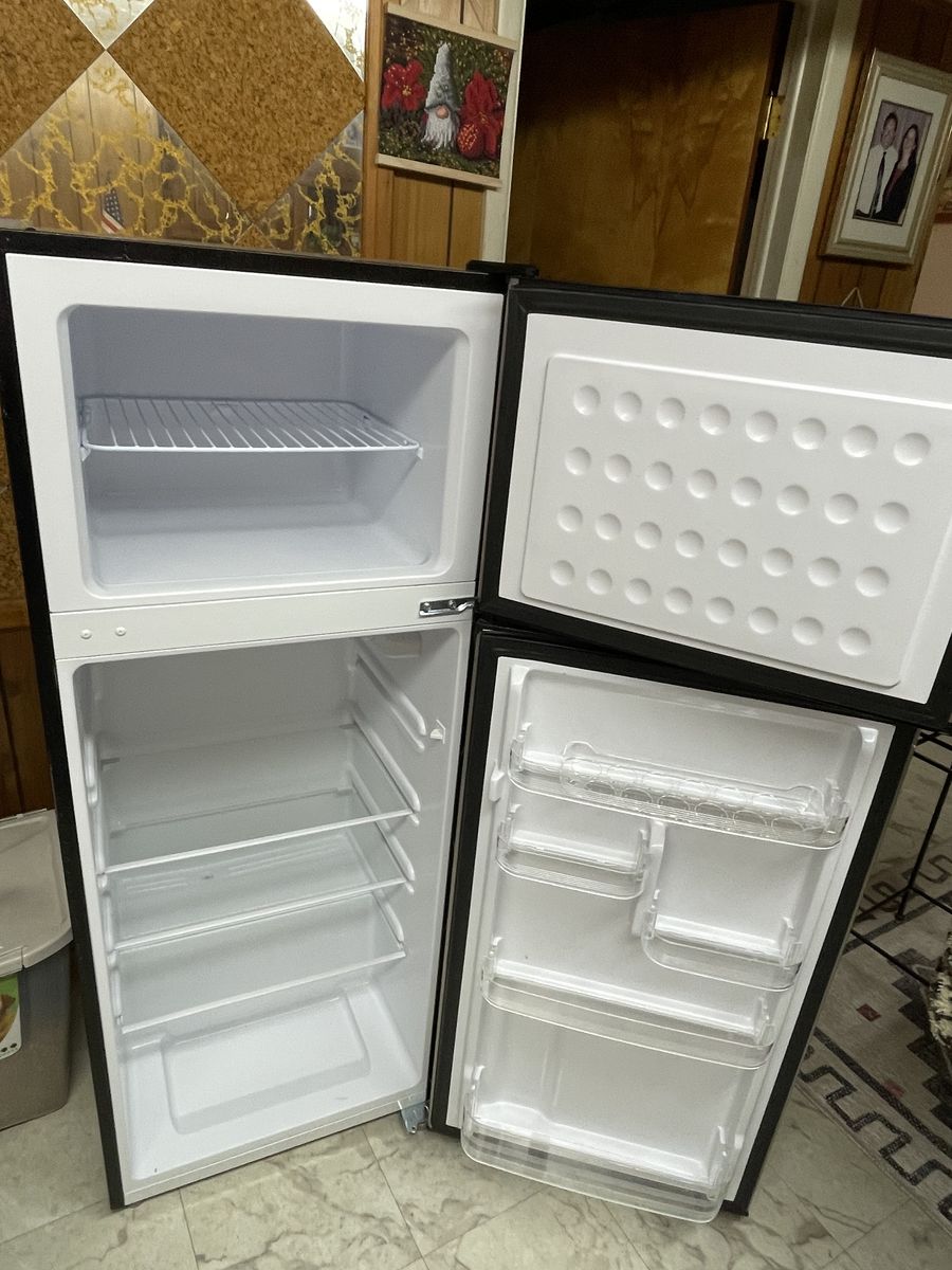 refrigerator practically brand new front is stainless steel. sides are black model number EFR780. 55" high x 21" w x 21" d. currently in the basement You haul. OBO