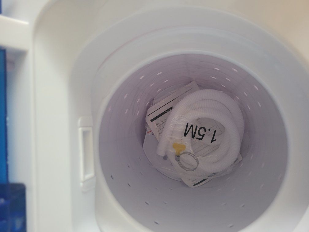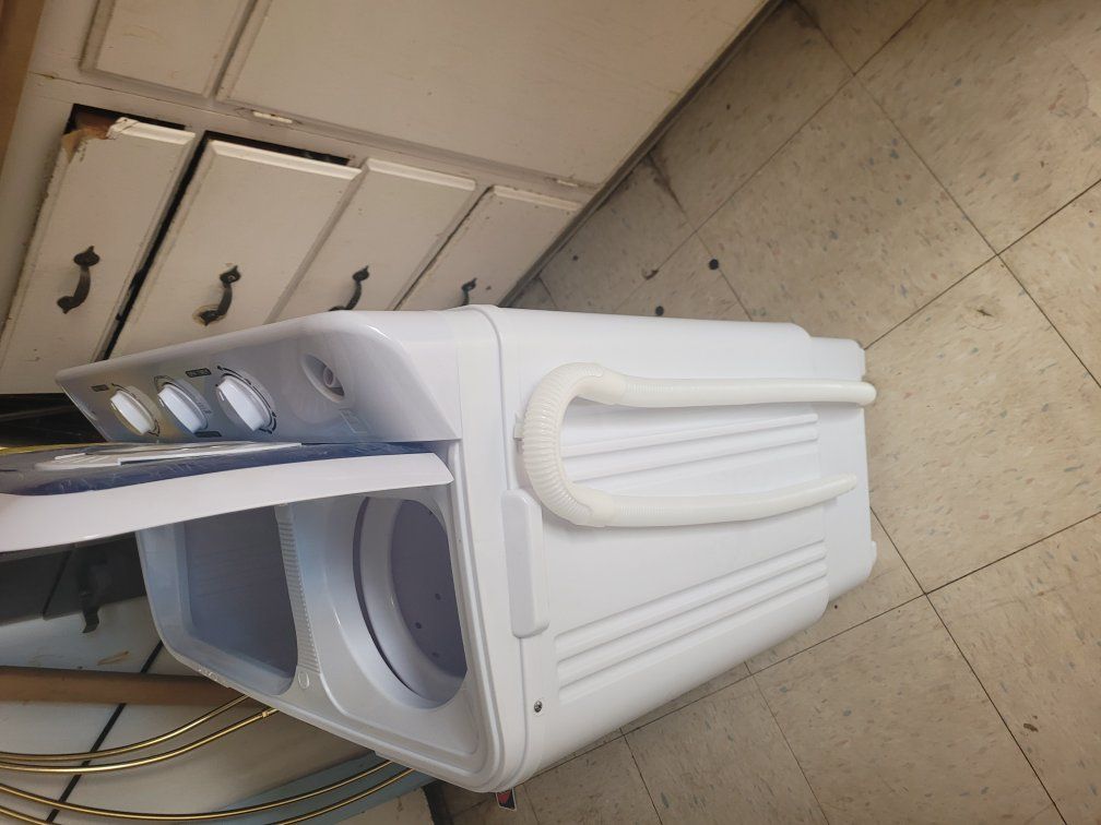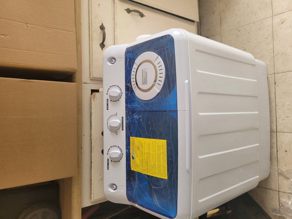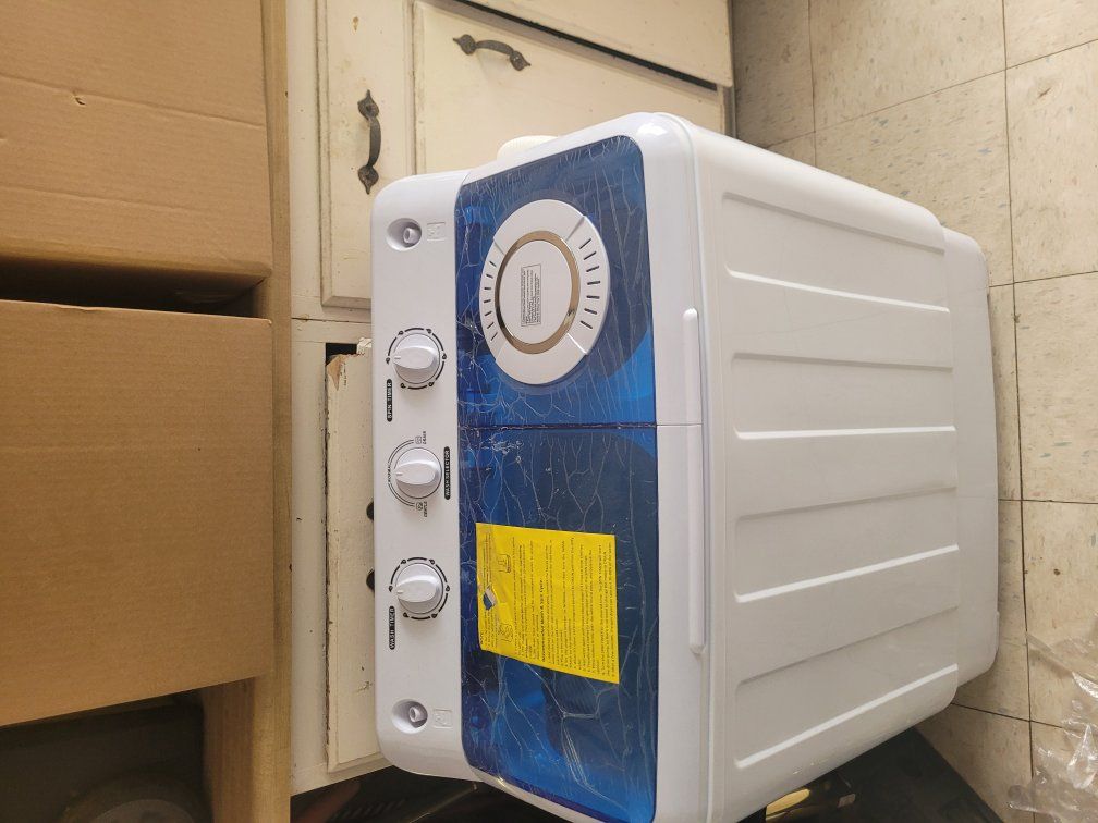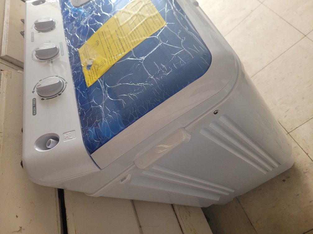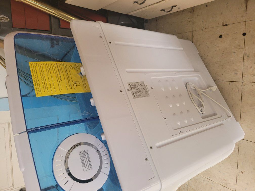 PayPalBrand new miniature washer with spinner on the side which drains out the water and makes them salmon eye dry so you can hang them up to dry. Instructions and hoses and everything included