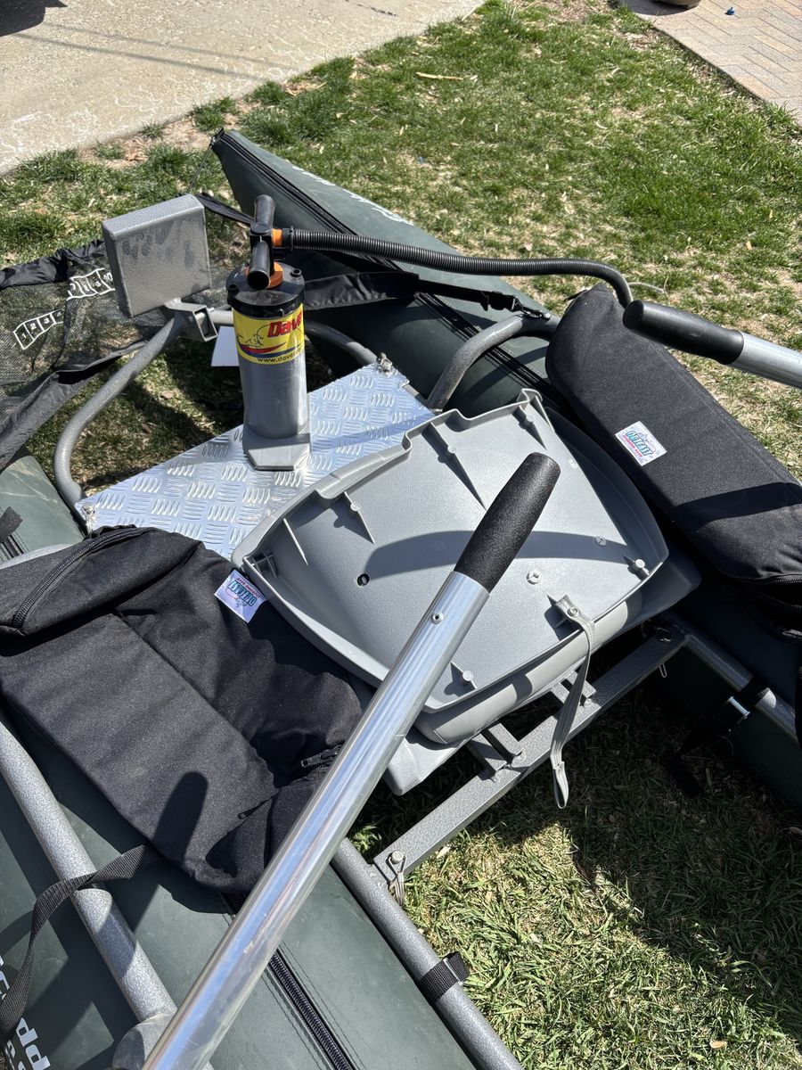 Included: Frame, pontoons, 2 oars, folding seat, 2 frame bags with insulation and multiple pockets, pump, patch kits and anchor.