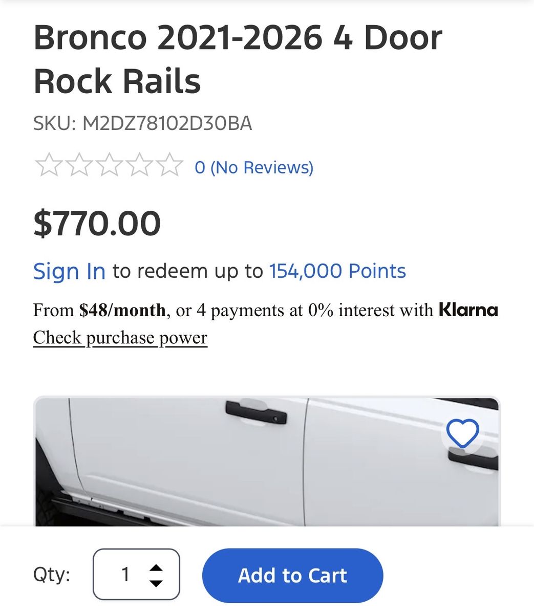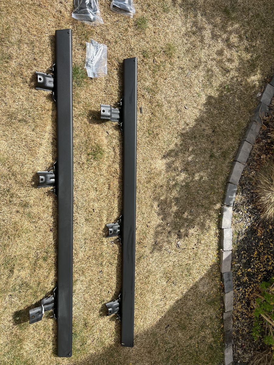 ZelleNew take offs. Four door ford factory rock rail sliders. Protect your bronco off road or on the streets. Clean look. Fits 21-26 4dr broncos. Comes with mounting brackets and hardware. $250. Ford price $770.