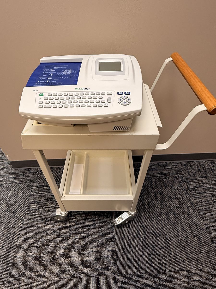 VenmoWelch Allyn CP100 EKG Machine in excellent condition. Includes cart with wheels, vinyl cover and extra set of electrode clips.