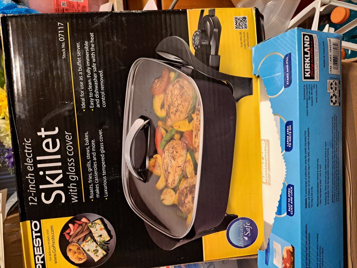 VenmoPRESTO electric skillet. Like new, glass lid. Roasts, bakes, fries, grills, casseroles. Great for buffets lines. Dishwasher safe. With box.