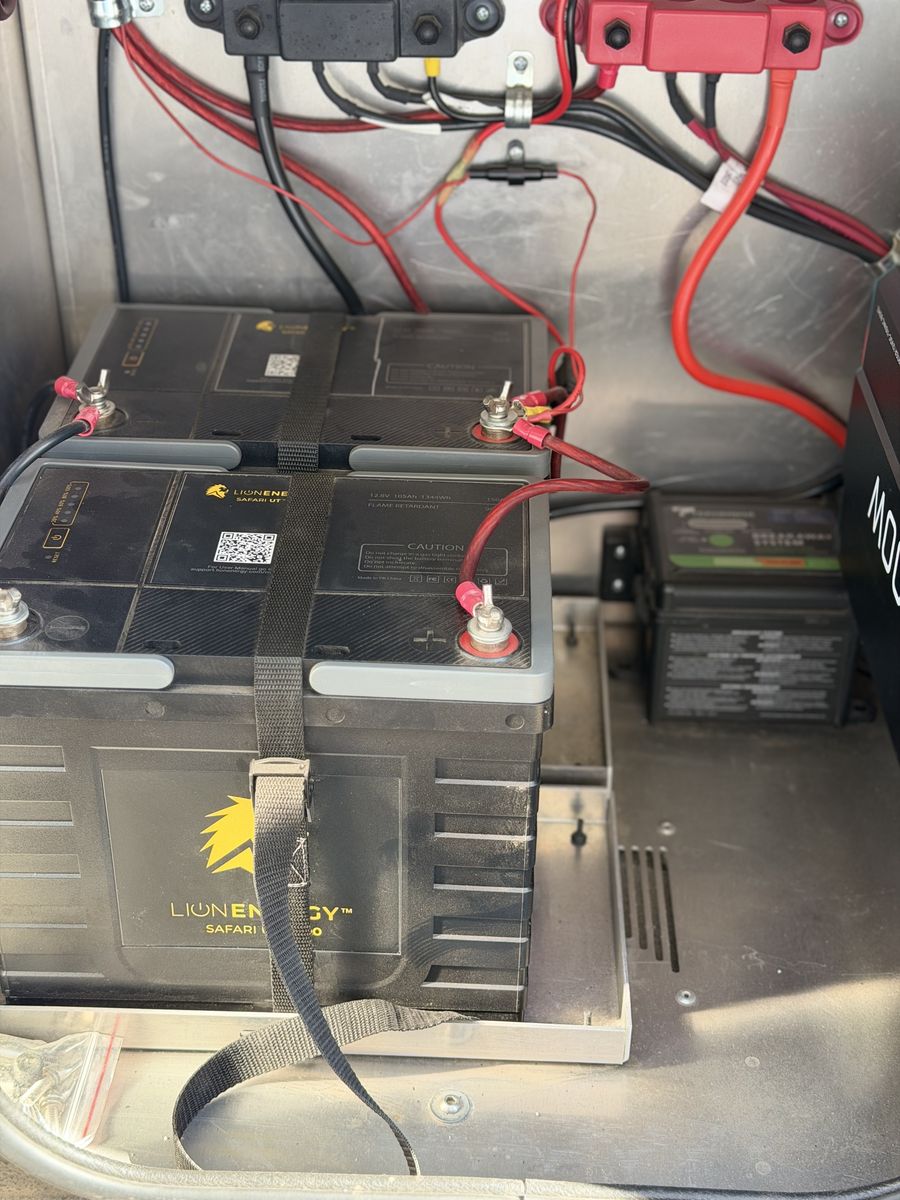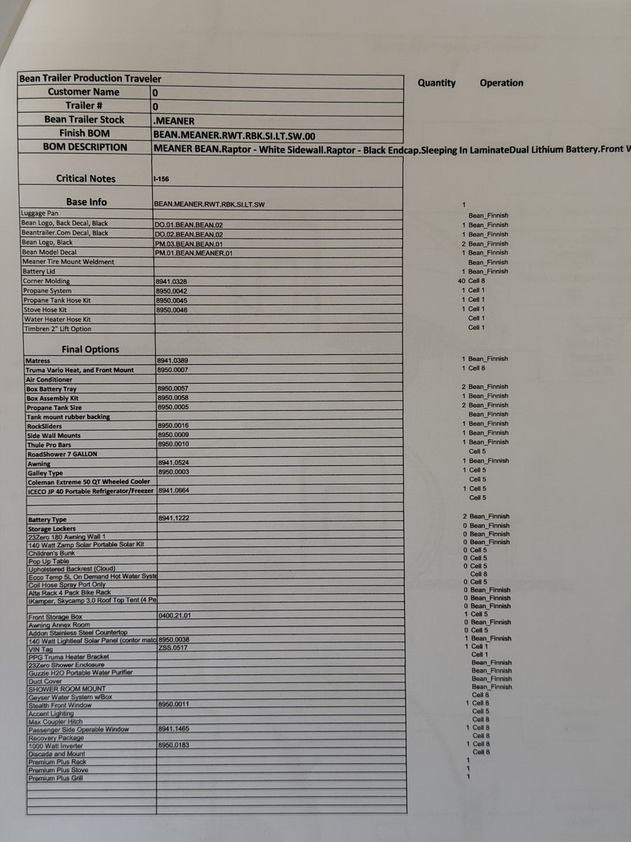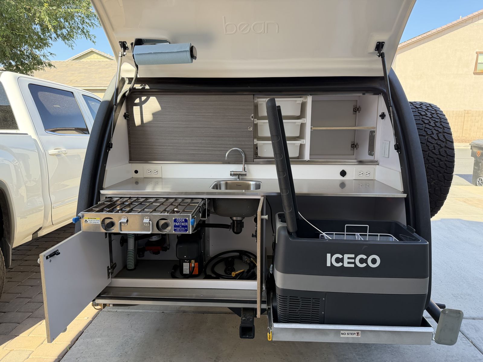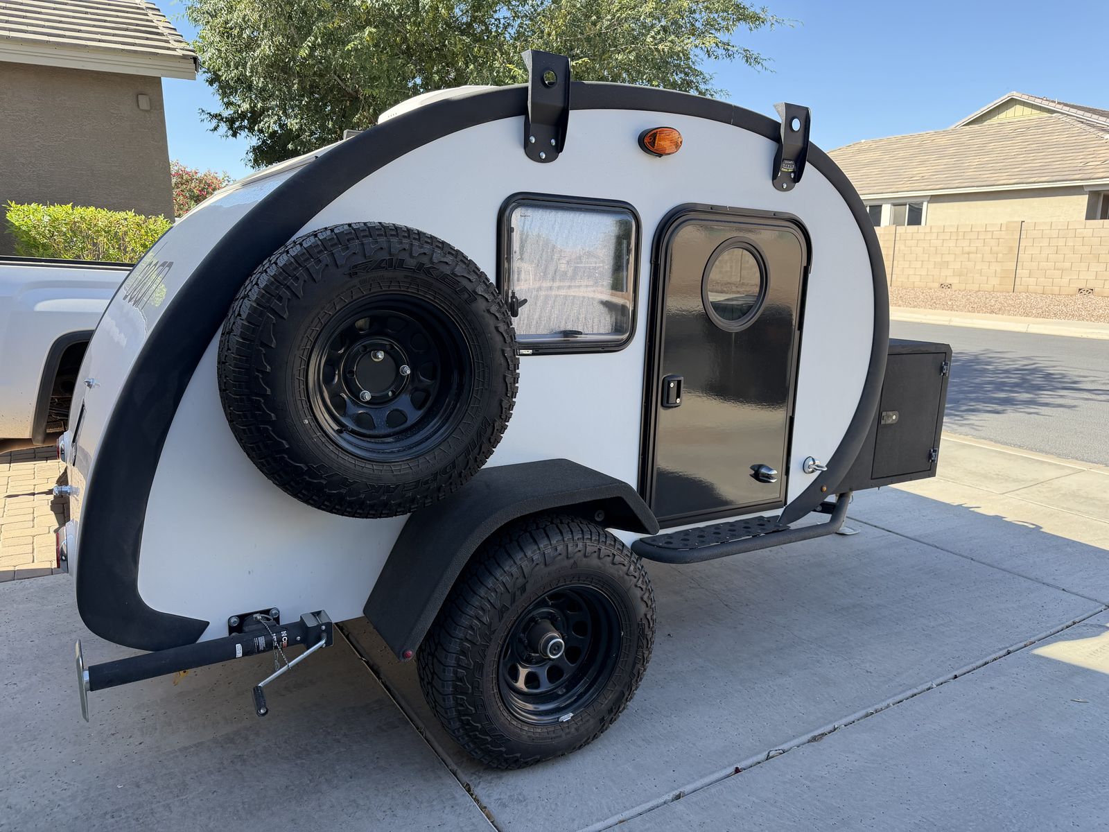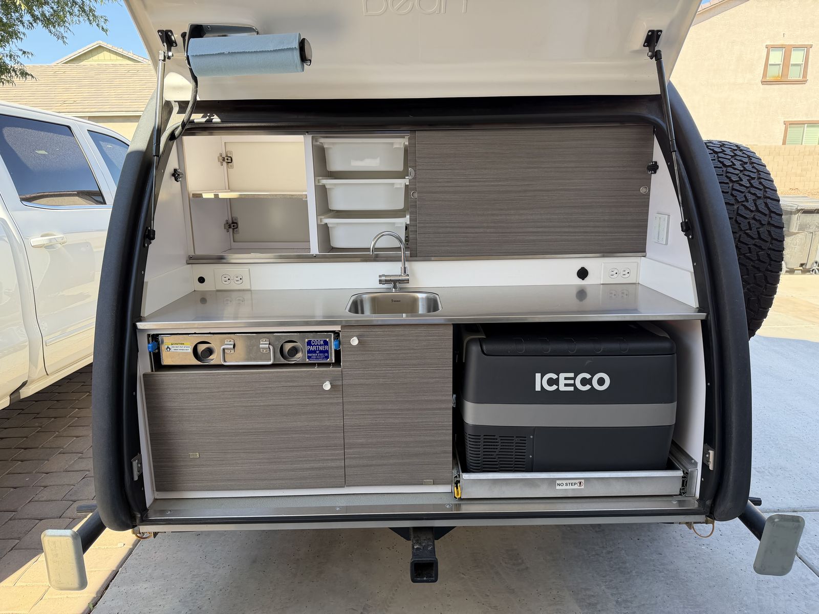 This YouTube video that show a walk through that is close to mine and will give you all the information you need. Go to BeanTrailer on YouTube and look for Mean Bean Teardrop trailer Walk Through/Off-road trailers, Camping Trave Setups. It's a little over 9 minutes long. My photos show many of the options I have. I have two Lion electric batteries, with the inverter. The other side of the black box is a good sized storage space. We have the articulating hitch, Truma heater, and much more.