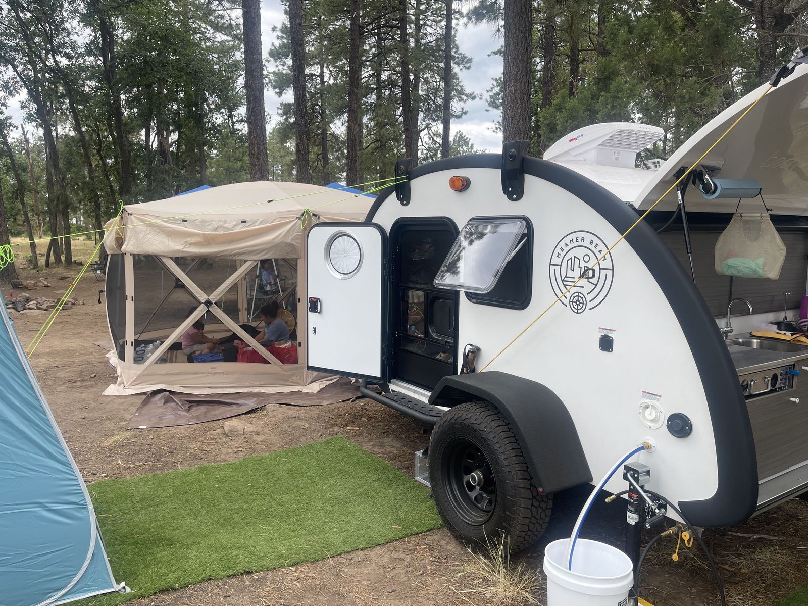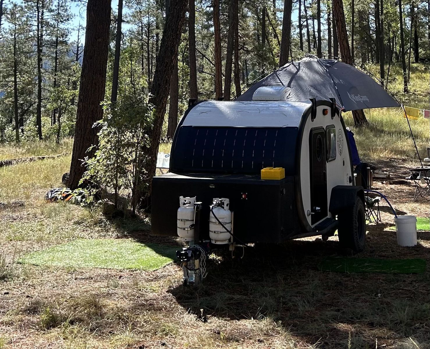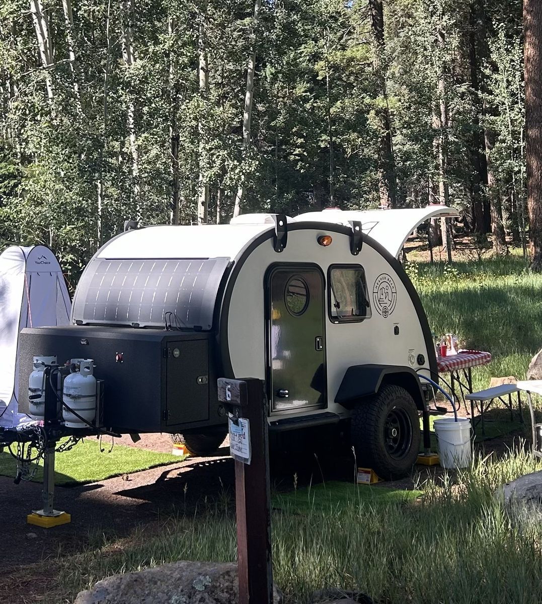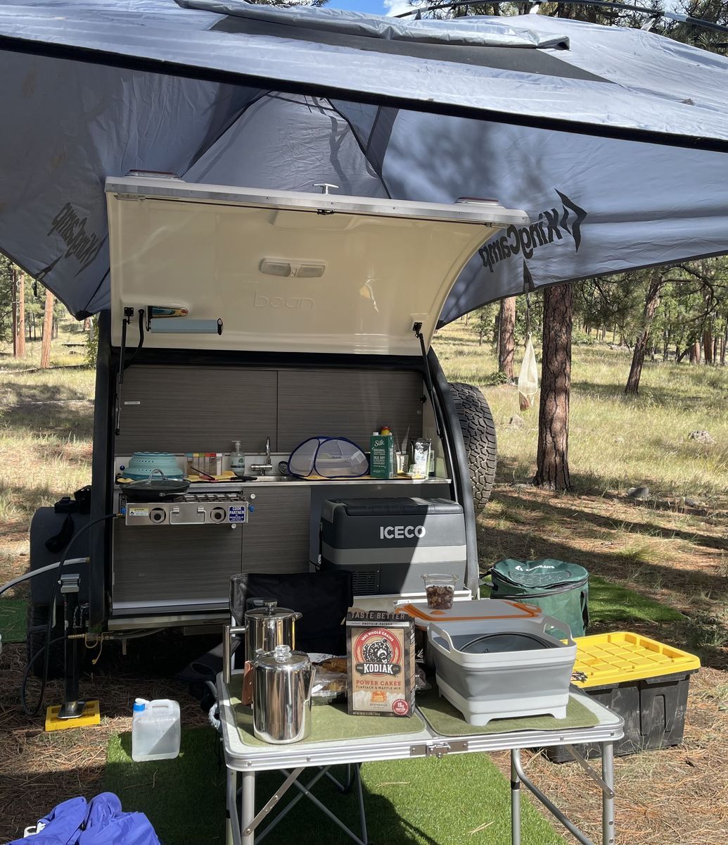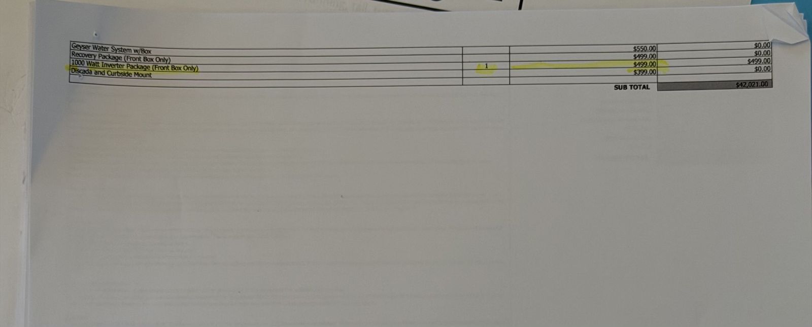 This YouTube video that show a walk through that is close to mine and will give you all the information you need. Go to BeanTrailer on YouTube and look for Mean Bean Teardrop trailer Walk Through/Off-road trailers, Camping Trave Setups. It's a little over 9 minutes long. My photos show many of the options I have. I have two Lion electric batteries, with the inverter. The other side of the black box is a good sized storage space. We have the articulating hitch, Truma heater, and much more.