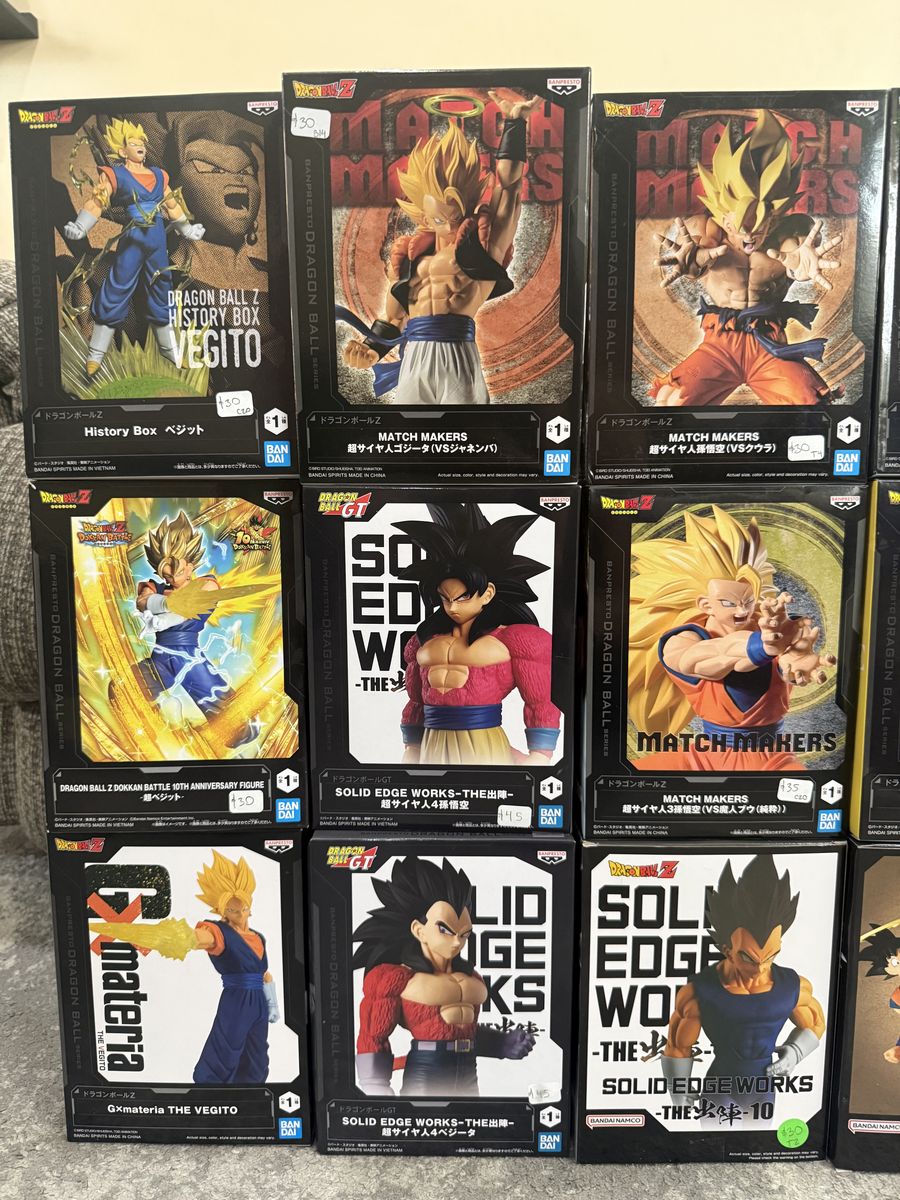 SUPER SAIYAN VEGITO - $30 SUPER SAIYAN VEGITO 10th anniversary - $30 SUPER SAIYAN THE VEGITO - $30 SUPER SAIYAN VEGITO - $30 SUPER SAIYAN GOGETA - $30 SUPER SAIYAN 4 GOKU - $45 SUPER SAIYAN 4 VEGETA - $45 SUPER SAIYAN SON GOKU - $30 SUPER SAIYAN 3 GOKU - $45 VEGETA - $30 GOTENKS - $25 SUPER SAIYAN 2 GOKU - $35 SON GOKU w/ HALO - $30 LEGENDARY SAIYAN SON GOKU - $35 SON GOHAN - $25 SON GOHAN II - $25 GOKU BLACK - $30 TURLES - $25 SUPER SAIYAN ROSE GOKU BLACK - $28 SUPER SAIYAN 3 VEGETA DAIMA - $30 FRIEZA $30 GOMAH -$25 YAMCHA $30