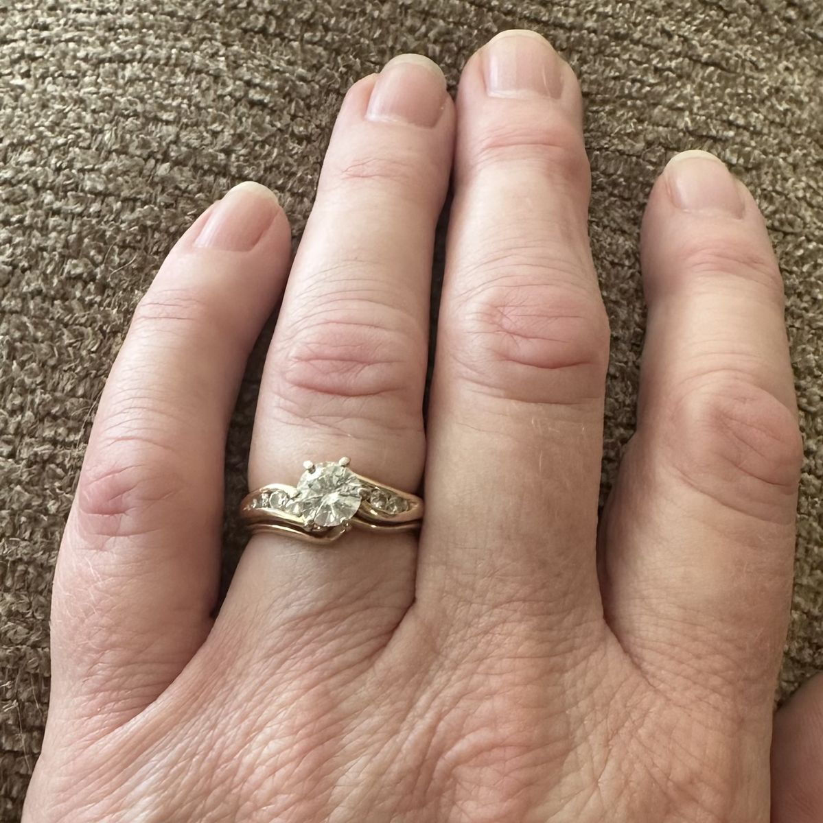 The center stone is nearly a carat and looks like a carat to the naked eye.