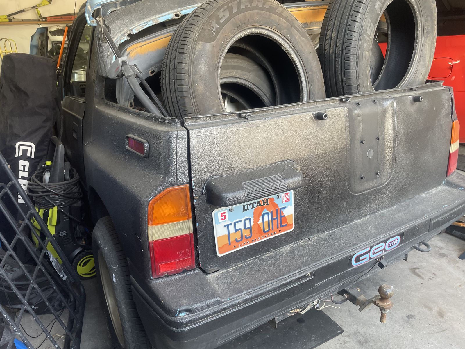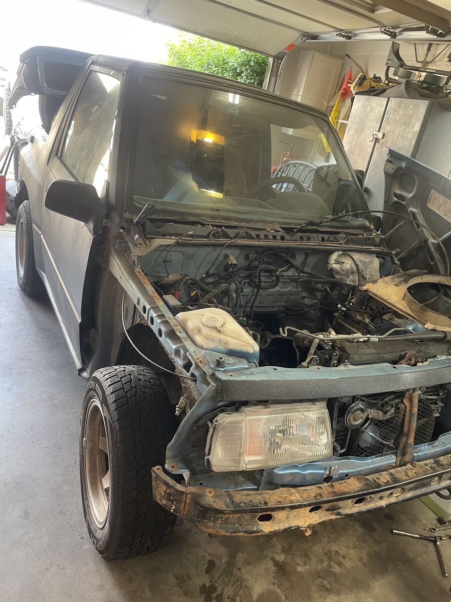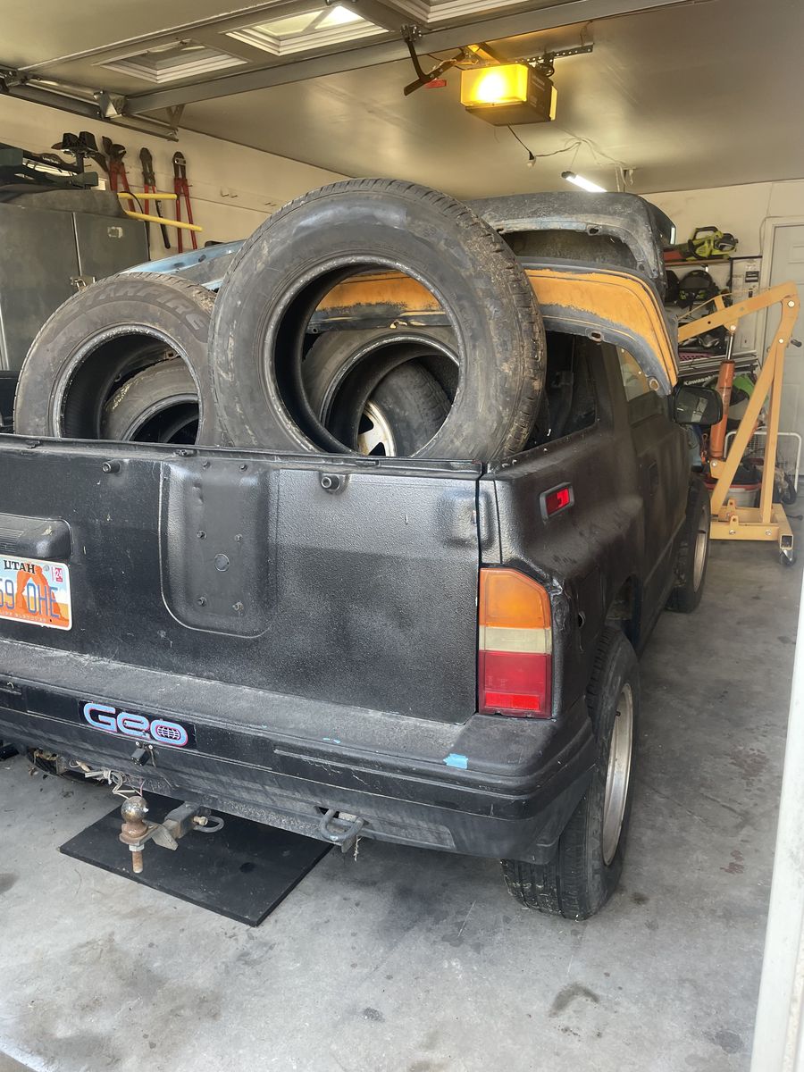 1995 geo tracker great parts rig or project mini pickup Does not Run; has no motor, manual transmission works great has Ac, spare set of tires, has lots of rust but stereo work (just needs a battery) also has spare front bumper and a few extra parts! the front door is falling off needs new mount welded on but windshield has no cracks and has moon roof and backup camera!! Title in hand $500 OBO