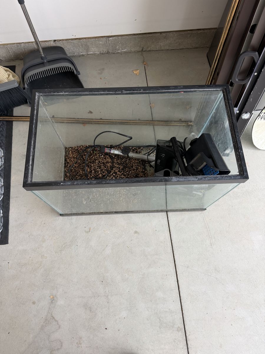 ApplePay20 gal fish tank. Will need a good clean. Has substrate and rocks in it. Comes with heater and filter (does not have cartridge) Pick up in Syracuse.