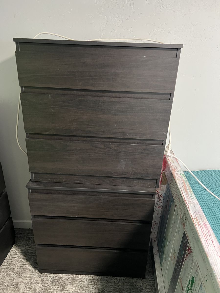 2 - 28” x 28” x 16” (stacked in pic) 1 - 28” x 44” x 16 (part missing) Dark brown color Sold as a set