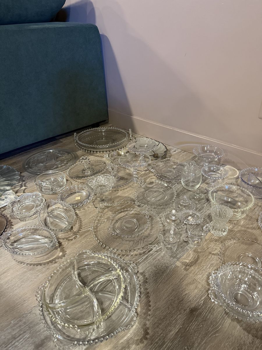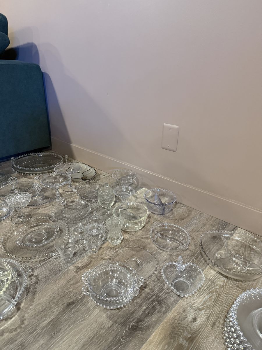 VenmoLarge candlewick glass collection for sale. Includes everything shown in the photos.