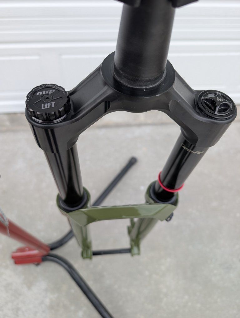 ZelleWheel size: 29 15x110, boost spacing 160mm of travel MRP Lift V2 damper ($420 retail) with blue tune for 200-240 lbs rider Butter Cups air spring 7.5" or 1900mm if steerer tube
