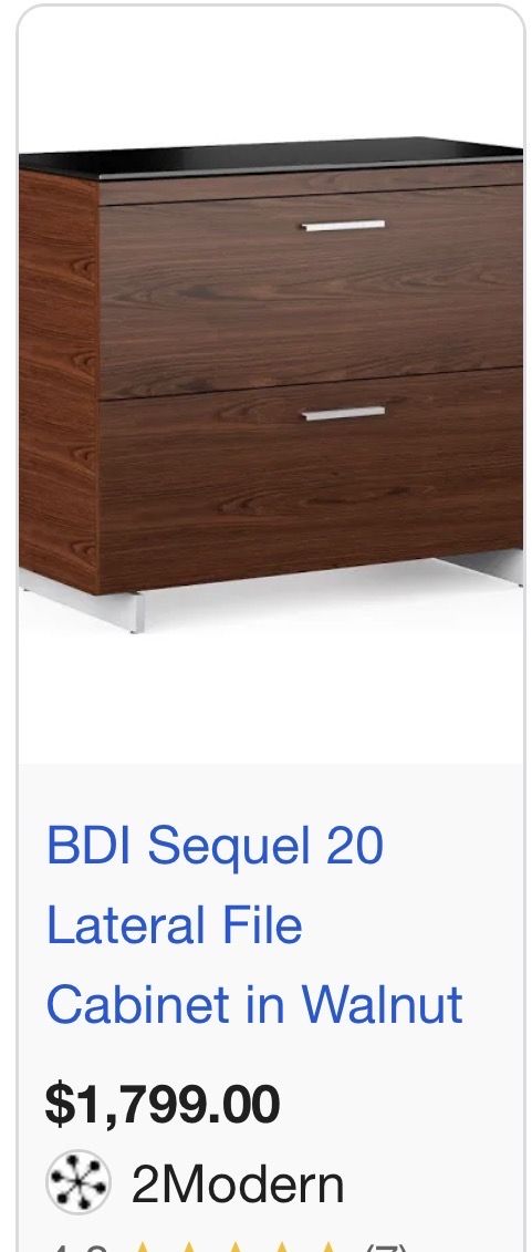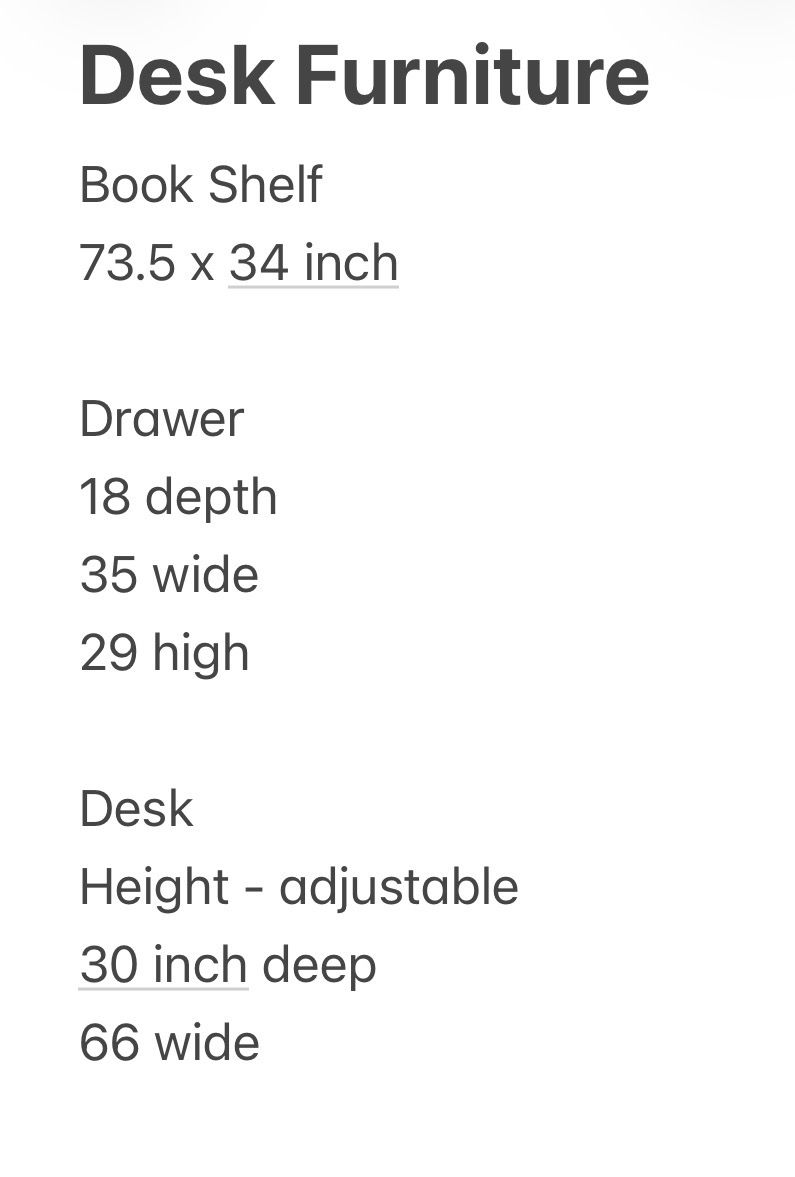 Office furniture from the brand BDI. Original set was over $5,000 but having a new office installed with custom built ins so it’s got to go. Measurements are in the images. Great condition, includes standing desk, book shelf, and drawers.