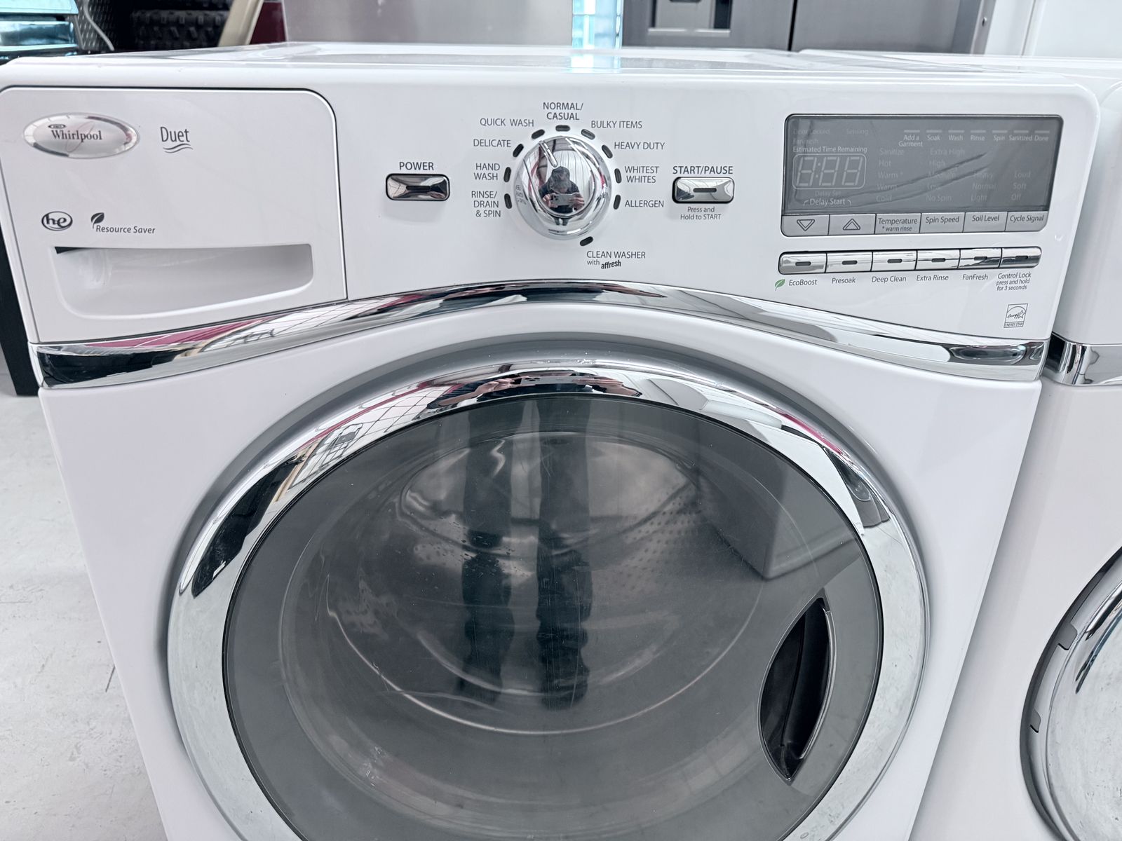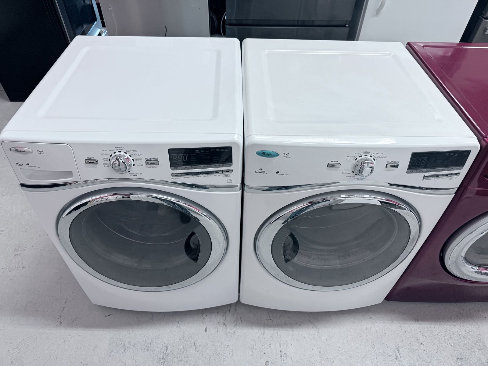 ApplePayVery clean white ultra capacity whirlpool duet steam washer & dryer set that can go side by side or stacked!!