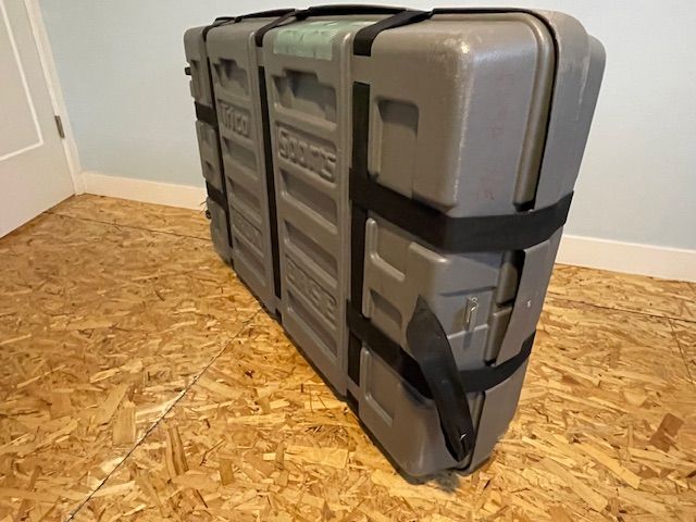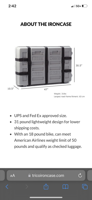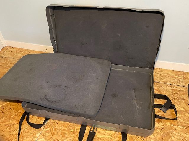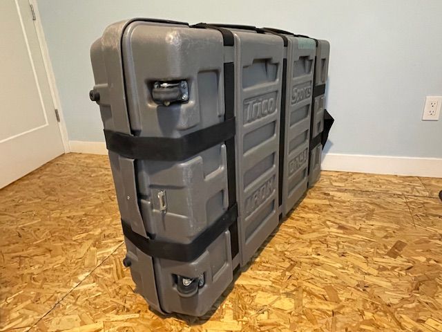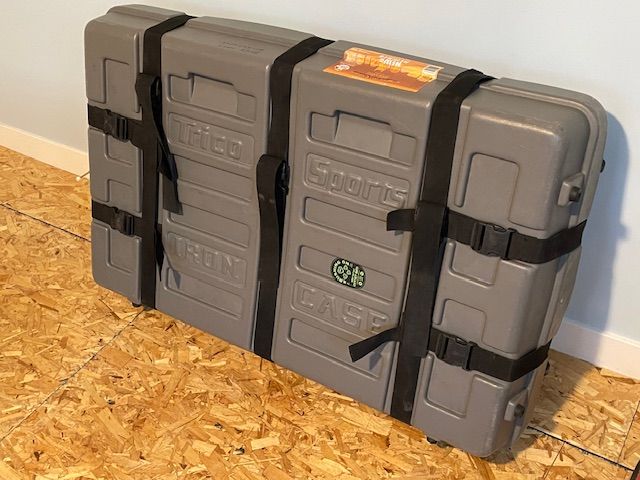 PayPalUsed Trico sports Iron Case. Bicycle shipping and travel case. Exterior is is 47x 30.5x10.5”. Width expands for a variety of bike frames, wheel sets, packing options. 3 thick foam pads you can keep everything separated and safe from damage. Lockable at each end. Heavy duty straps and buckles. Roller wheels and handle to pull from. Has worked great for us on a couple of occasions through airports and vehicle travel. Asking $200 picked up in SLC. Can remove stickers, or add more at buyers request.