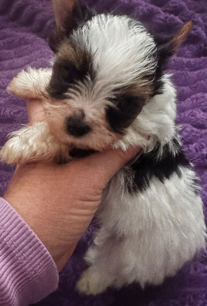 VenmoAKC Yorkshire Terriers Beautiful, sweet, tiny, hypoallergenic Yorkie puppies. We have one male (parti color, white, black and tan) and one female (black, white and tan). Both pups carry the Parti gene. They will be approximately 3.5 lbs full grown. Mom is a parti Yorkie weighing 3.5 lb and Dad is black, brown and white, weighing 3.5 lbs. Mom is onsite. Puppies have started potty training and have been socialized with other dogs, cats, children and adults. They have been given so much love. Pups were born January 26th and will be ready to go Easter weekend at 10 weeks old. Puppies have had their tails docked to AKC standards and dew claws removed. They will come with