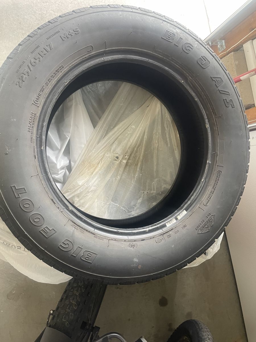 Four Big O, Big Foot, all season, 17 inch rim tires for sale. This is a great deal and I will not negotiate lower. $100 for all 4 tires.