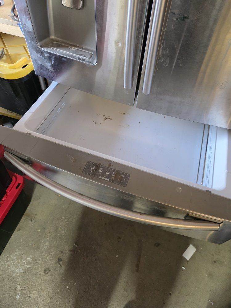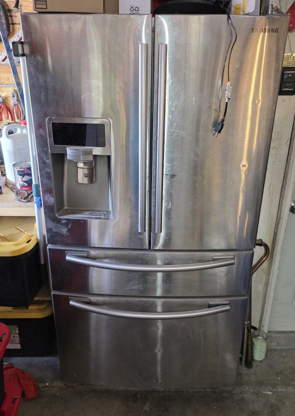 It's a Samsung pull out bottom freezer with middle draw and 2 doors on top. it works, but doesn't keep things cold enough. it has been sitting for 8 months ths so it is nasty inside. free to the first person that comes. you will need to load it as I am injured and not able to move it. currently is in my garage. call or text with questions please my name is Marcus
