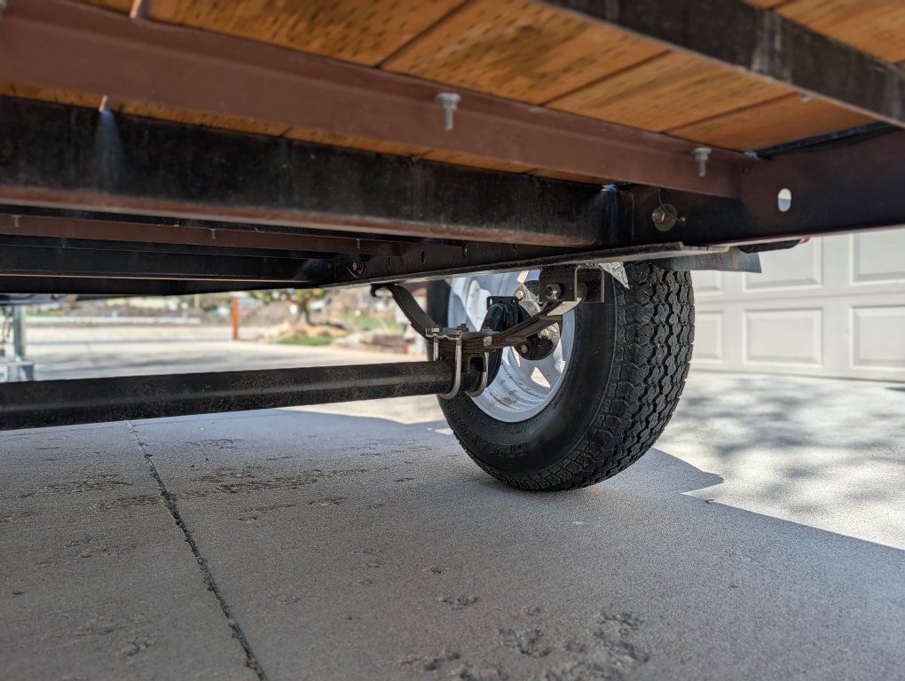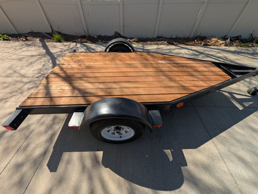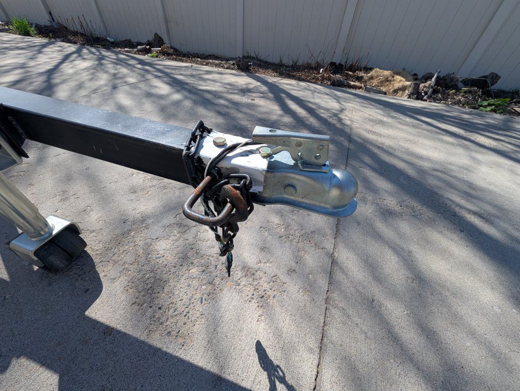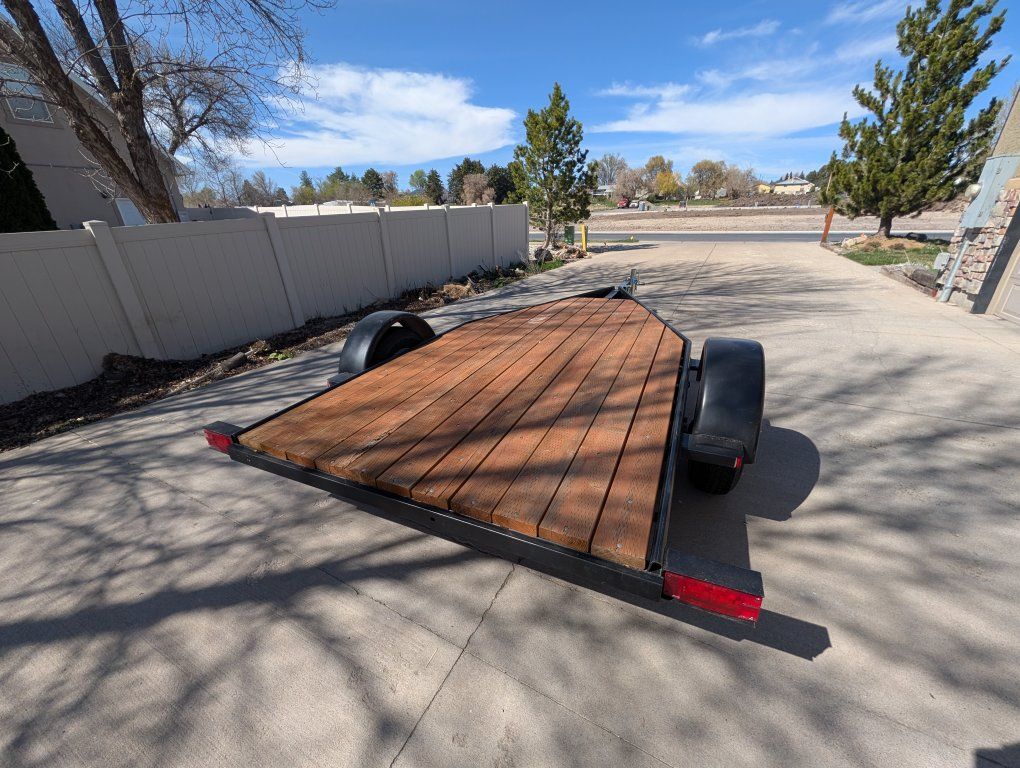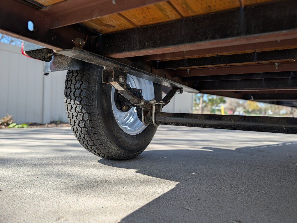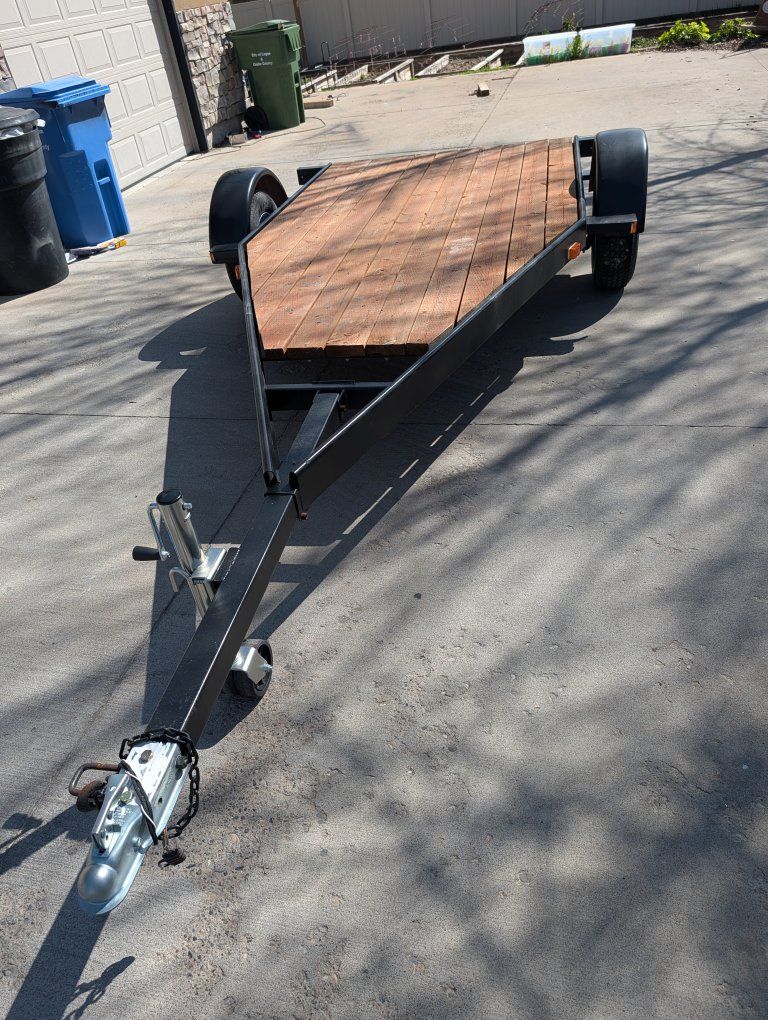 GooglePayThis used to be a boat trailer, so the width begins to taper 6 feet from the rear. The axle, springs, wheels, tires, 2" hitch, and jack were all new last year. The trailer has been used to take three loads to the dump and that is all.