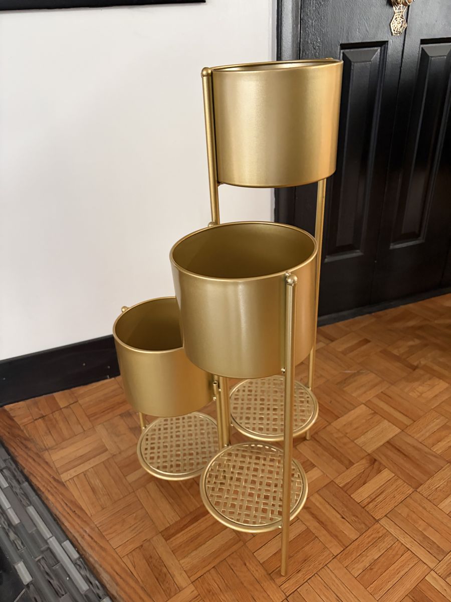 VenmoIs brand new, never used. Purchased it and did not fit where we wanted to put it. It folds in and then out to hold the plants. The measurements are in the photos.