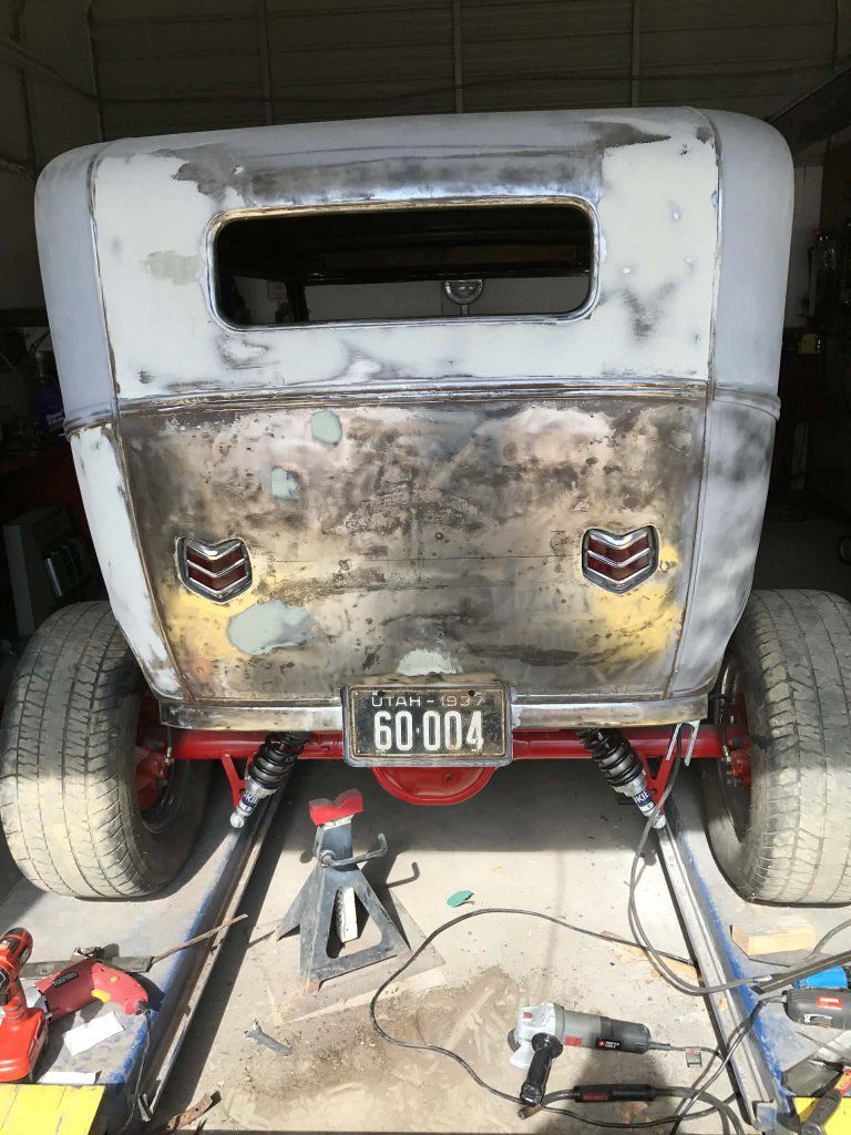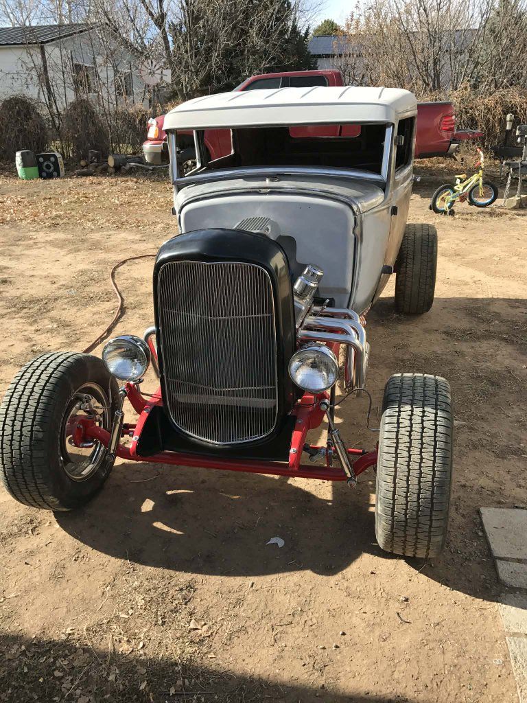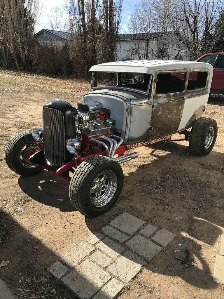 Located in Northeastern Utah 1931 2DR Ford Sedan. Chopped 4 inches, has a 9" triangulated 4 link, Speedway front axle. New '32 Ford grill shell and aluminum radiator, will wood front disk brakes, Vega steering box, new chrome steering column and steering wheel, chassis is boxed. Rear disk brakes, frenched license plate holder and tail lights ('40 Ford lights)