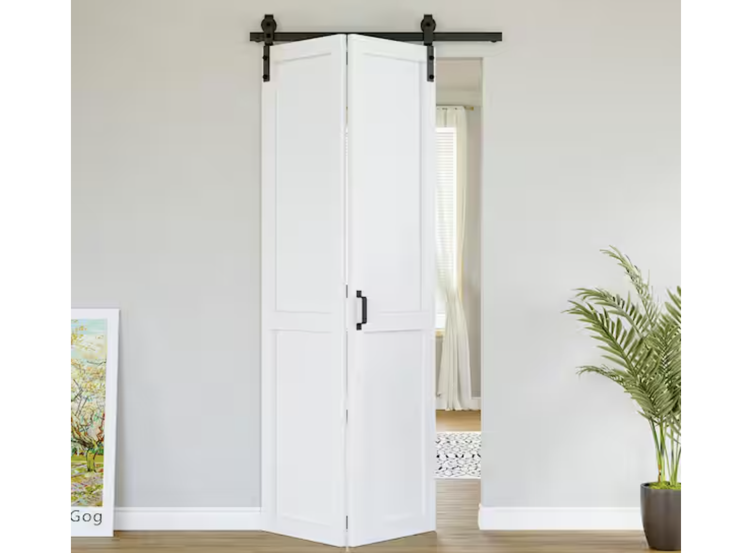 Classical H design meet spin bifold style, this barn door will be your best choice. Elegant sliding and bifold will give you a smooth experience you never ever had. The pre-finished surface is ready to use and no need to paint/stain it yourself,Equipped with high quality hardware kit, which has experienced 100, 000 times closing and opening text.
