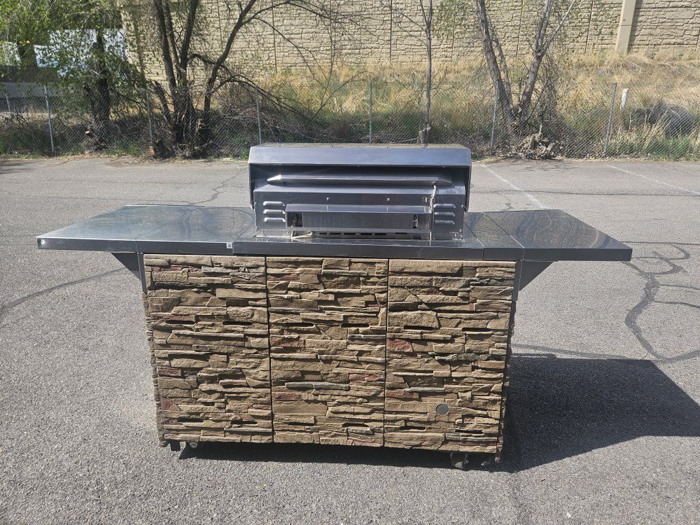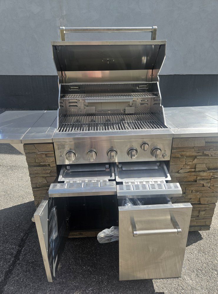 VenmoBrand new Spire 5-Burner Built-In Propane Gas Grill Island. This unit has never been used — burners, grates, and interior are all untouched. High-end stainless steel grill with stone island base and extended side countertops. Perfect for a backyard kitchen, patio upgrade, or outdoor entertaining space. Details: 5 stainless steel burners Rotisserie feature Propane gas Stainless steel construction throughout Built-in stone island base Warming rack + storage cabinet Electrical ignition Large cooking area (758 sq in) Overall size: approx 81” W x 27” D x 49” H Heavy-duty unit (~560 lbs) Condition Note (Full Transparency): There is one scratch on the lid and a couple rocks in the back are chipped. Also some of the paint on the control panel came off while cleaning it up. Otherwise, the grill is in mint, brand-new condition. Retail Price: ~$2,350 + tax Asking: $700 Bring a truck/trailer — this thing is heavy. Message me if you want to come see it in person.