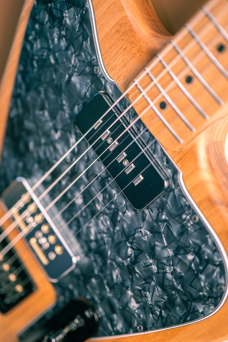 ELECTRONICS (Can be Customized) • Eric Custom® P90 Alnico V Bar Pole Neck PU • GFS Foil KPM36 Alnico Soapbar Enamel Wire Bridge PU • Brass Split Shaft Full Size 250K Pots with .022uf Orange Drop Cap • Oak Grigsby Style 3-Way Switch with Cloth Pull back wiring • Full Copper Shielding in all Electronic Cavities