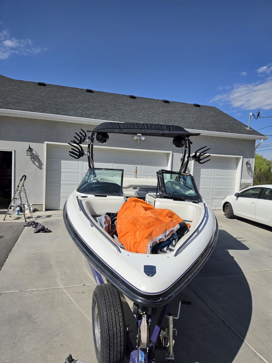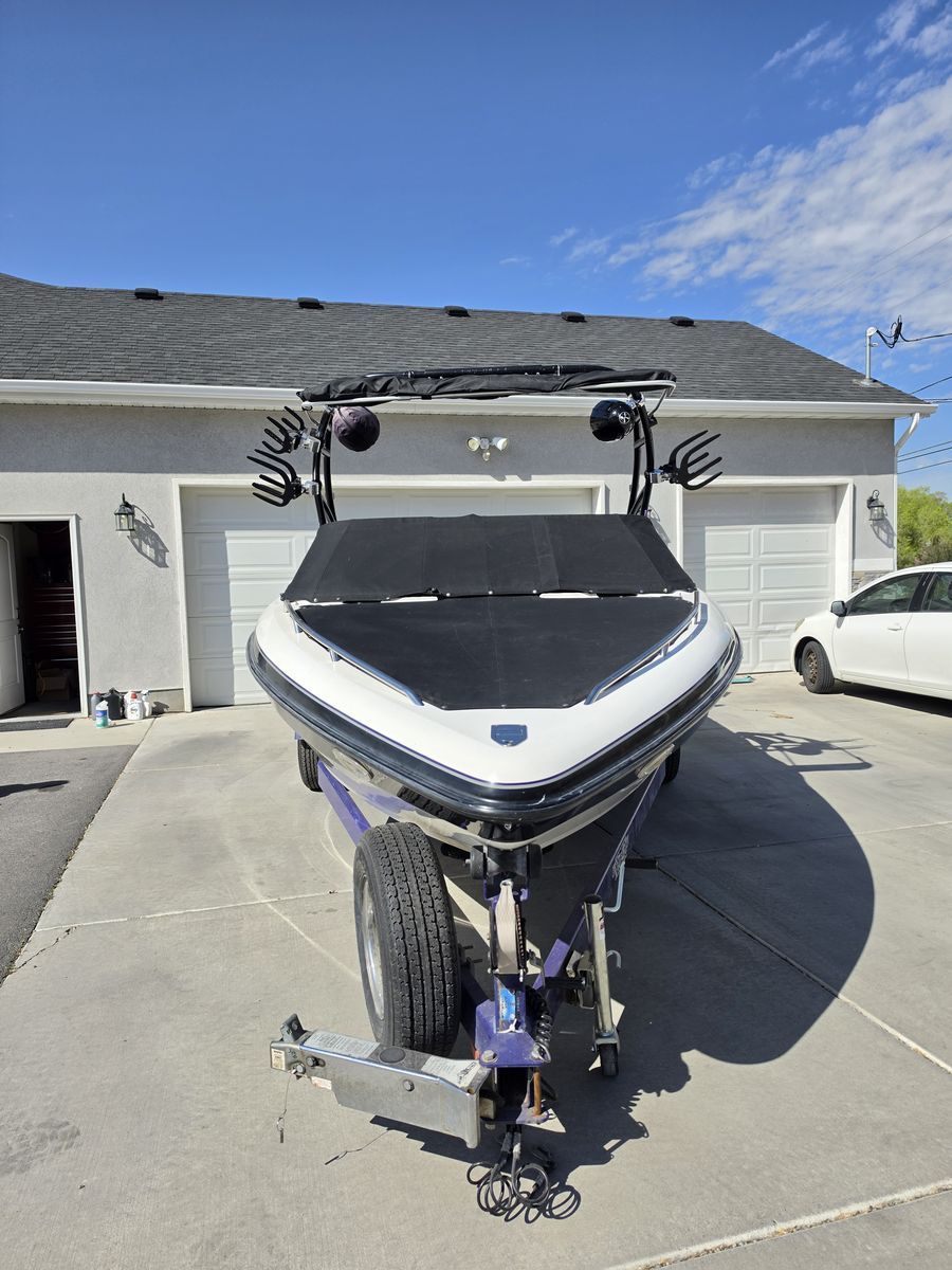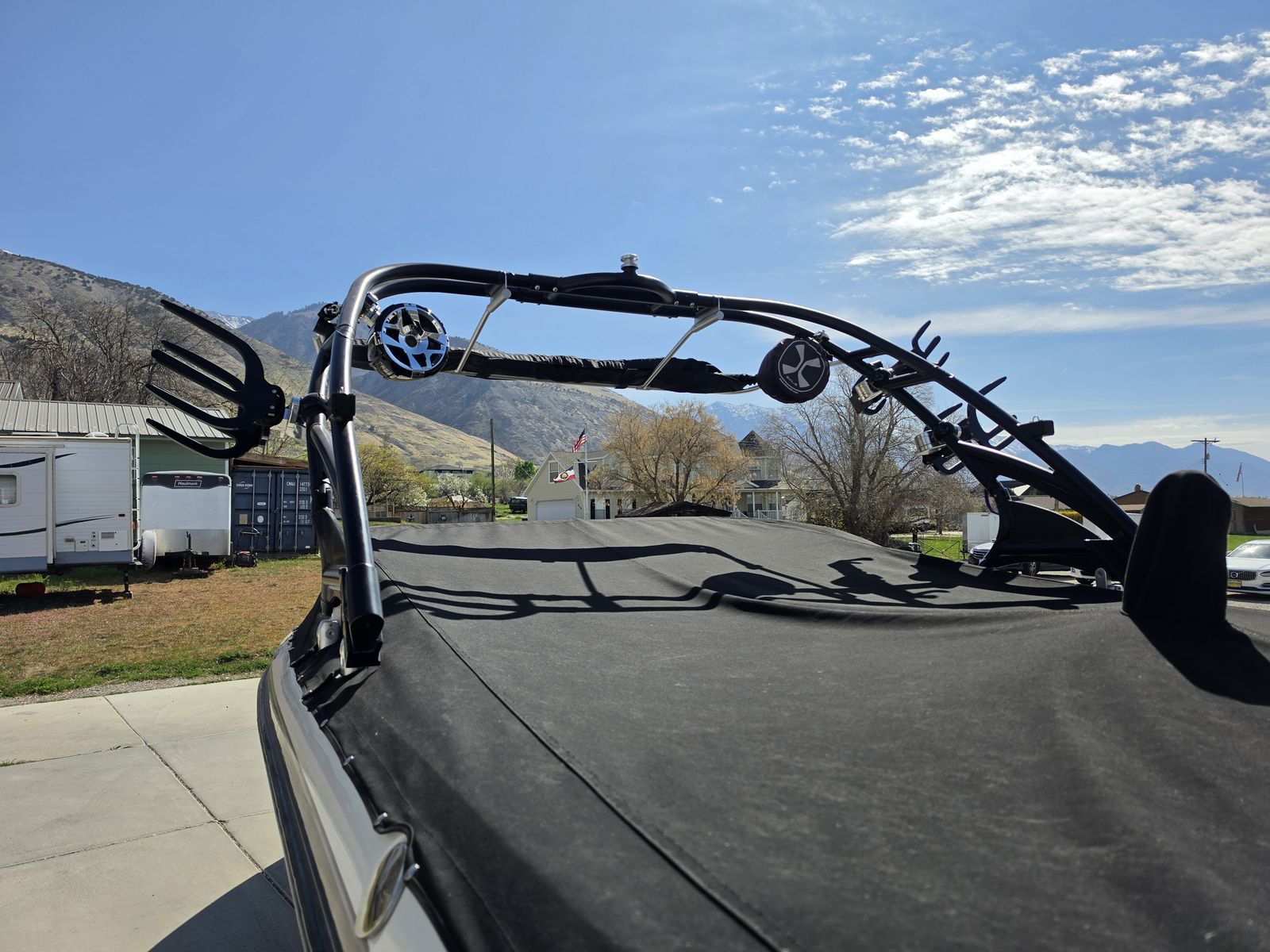 -1 Kneeboard & Wakeboard rack -1 Kneeboard & Surf Board rack -1 Ski / Slalom rack -NEW dual 9" Exile XM9 tower speakers -NEW Kicker speakers throughout interior -2 NEW amps to run sound system: