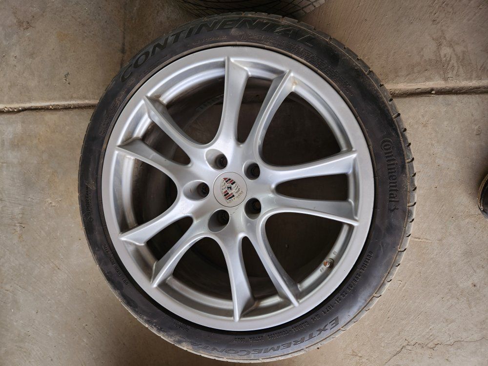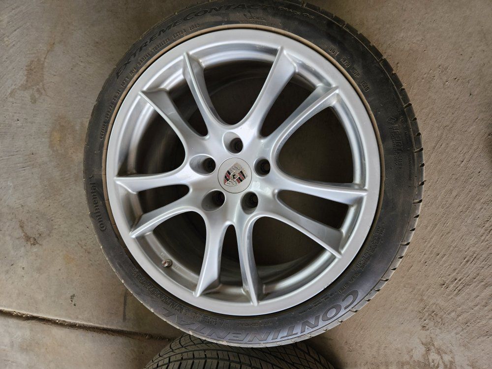 selling 4 OEM 21in porsche rims. 1 has some small road rash, but nothing major. Overall in great condition. The tires only have about 1/8in remaining and are Continental Extreme Contact 295/35 ZR21. Asking $600 for all 4 OBO. 25 ball lugs included.