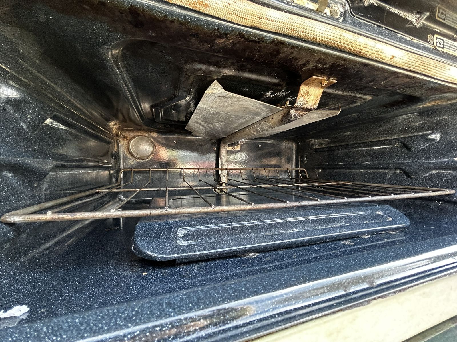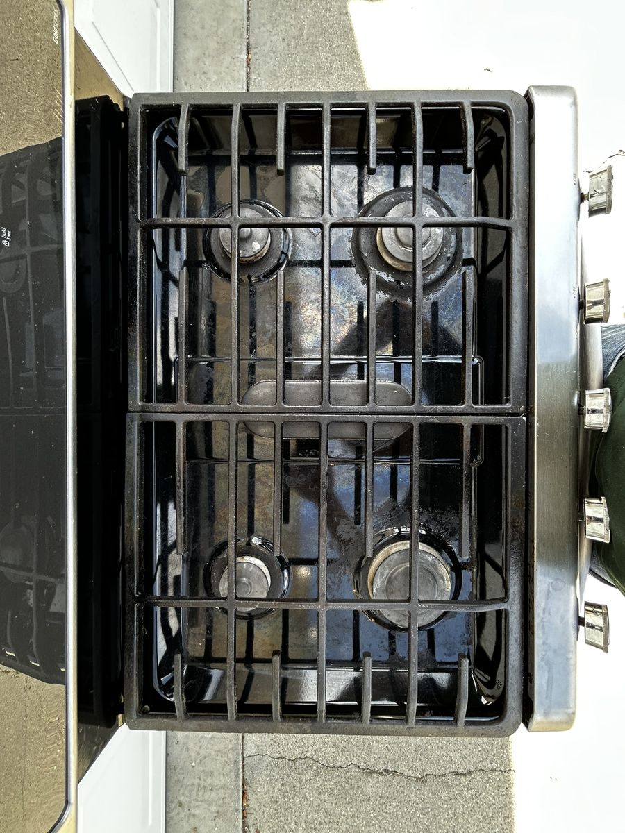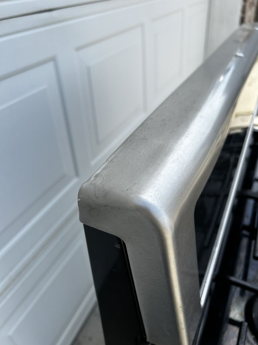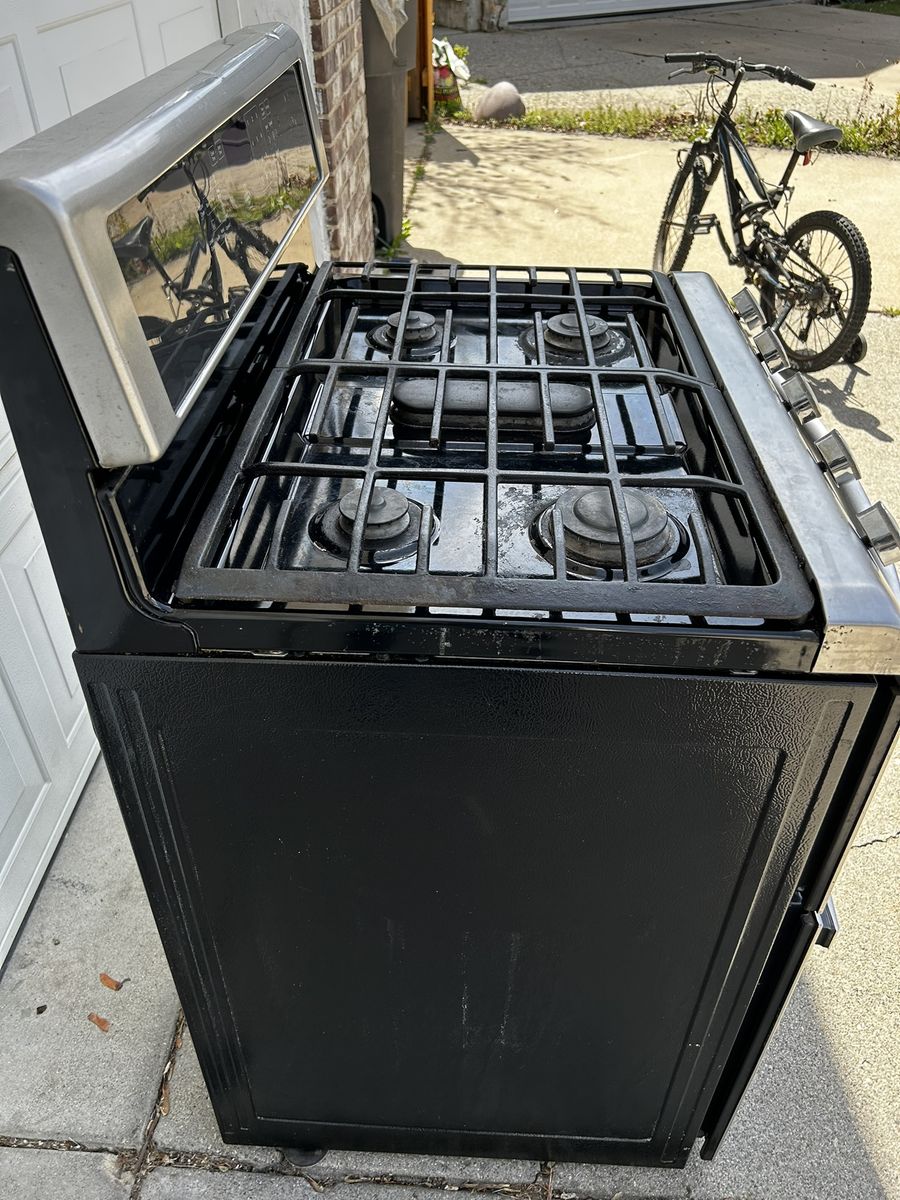 We moved and our new place didn't have a gas hookup in the kitchen. We've loved the oven and it's in great shape. Everything works perfectly. The knobs have a few nicks and scratches and it does have a couple minor dents on the top from the move, but all cosmetic.