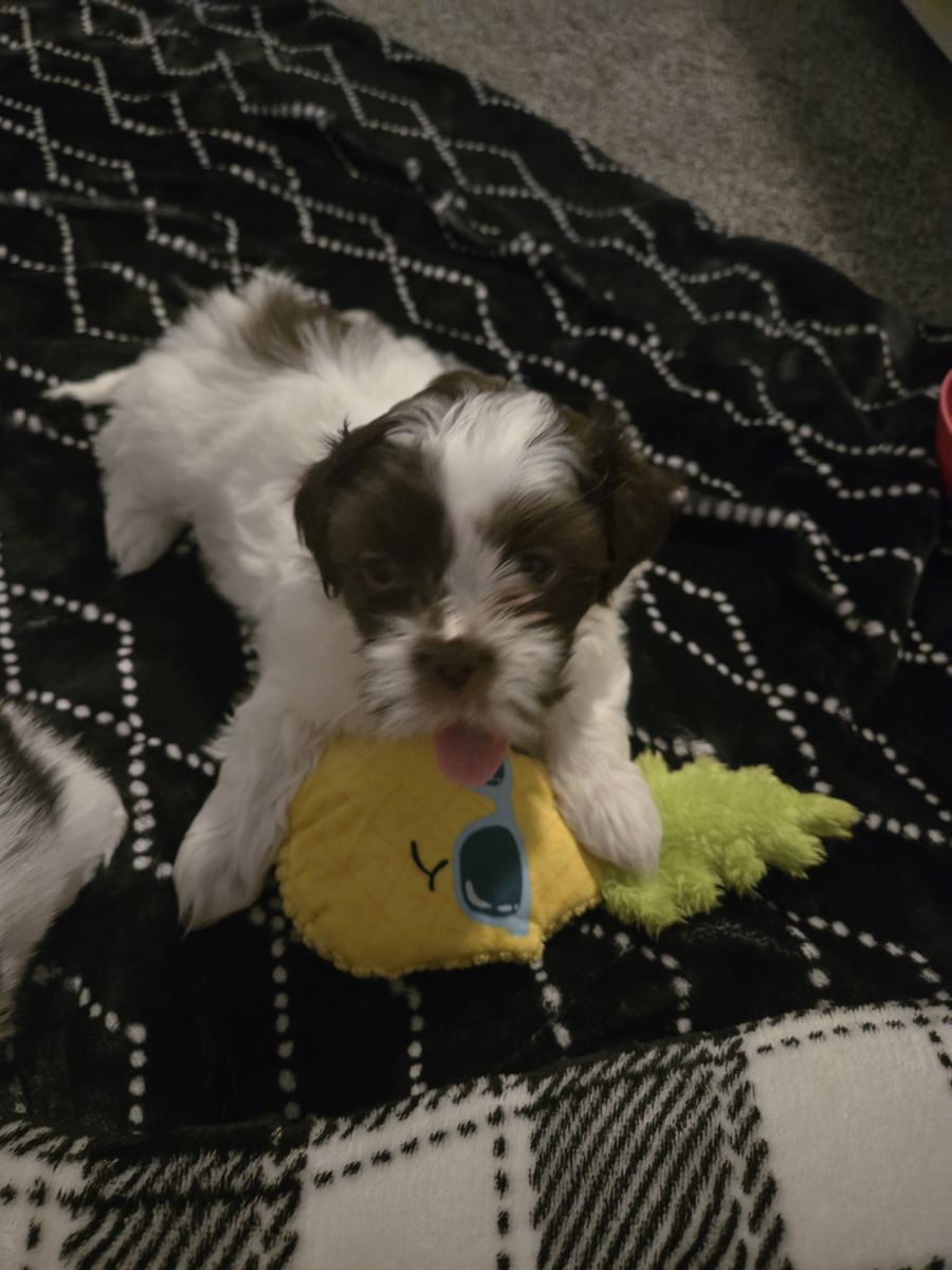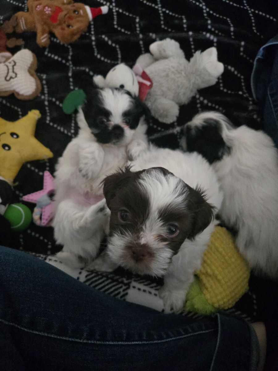 They are so sweet, playful, and cuddly. They are very intune to their owners emotions. Kid friendly, love to play with toys and their littermates. They do not like loud noises, they will run and hide. We have 2 boys and 1 girl, they are 1/2 Shih tzu 1/2 Maltese/ yorkie mix. They are considered the teddy bear breed.