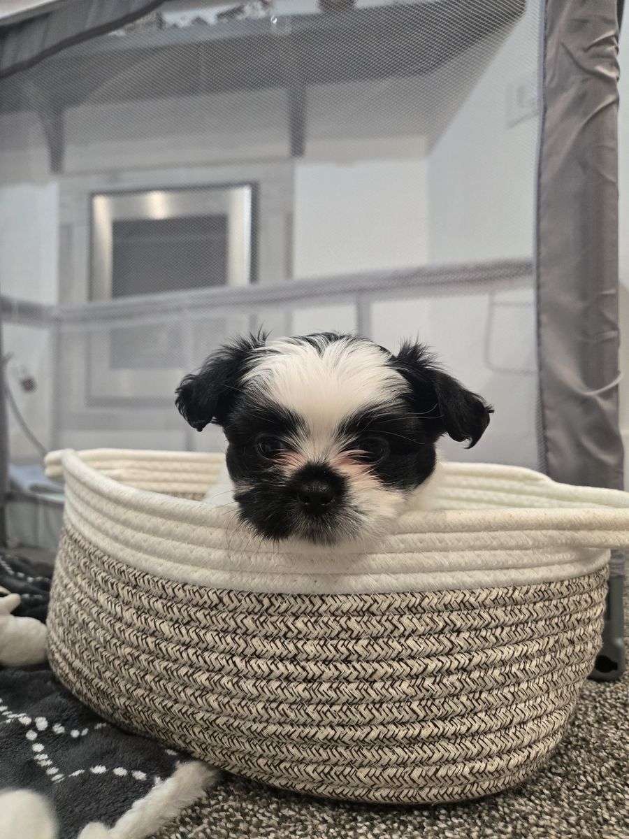 He is so sweet, playful, and cuddly. Kid friendly, love to play with toys and his mama and brother. He does not like loud noises, he will run and hide. We have 1 boy left he is 1/2 Shih tzu 1/2 Maltese/ yorkie mix. He is considered the teddy bear breed.