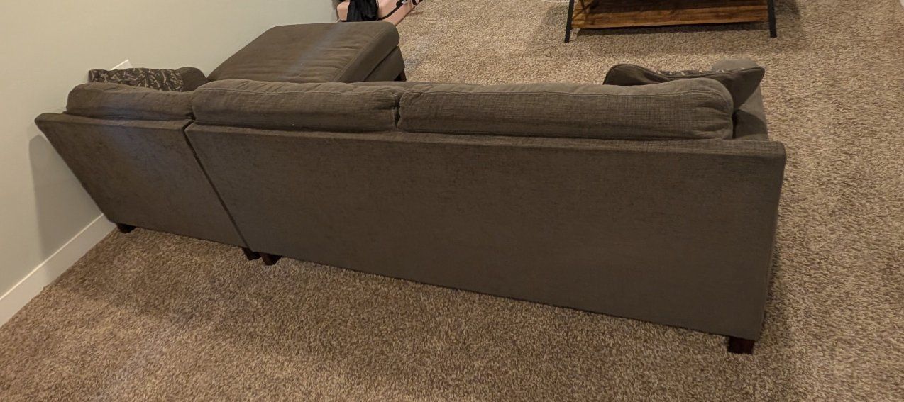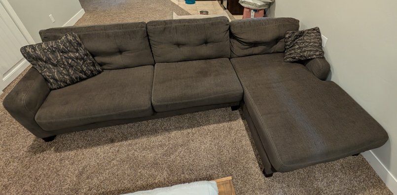 PayPalVery comfortable fabric sofa with a chaise lounger on the left side. It's in good shape, and only looking to sell because we are moving soon.