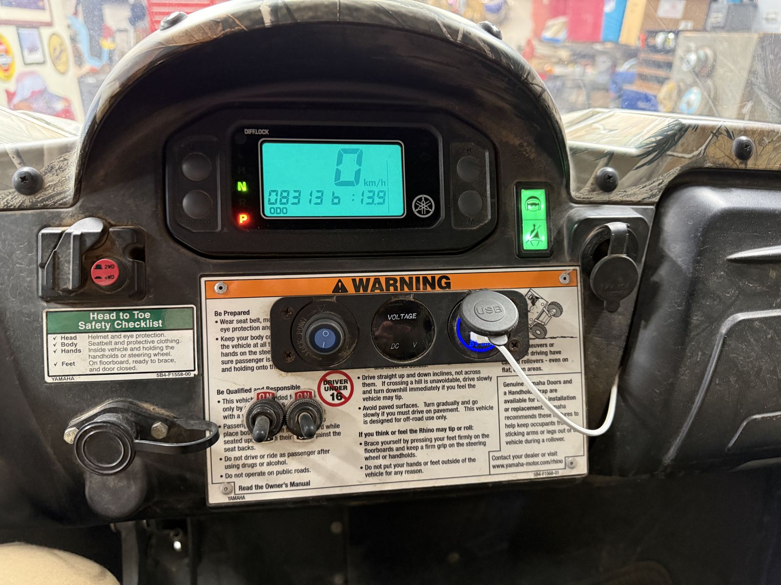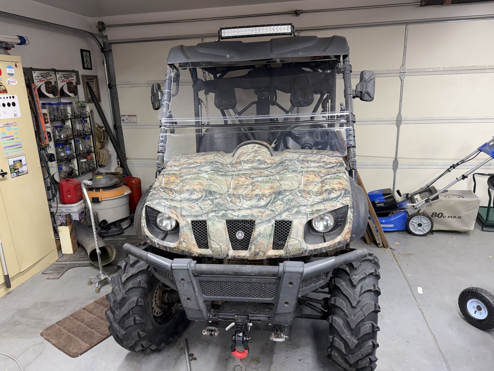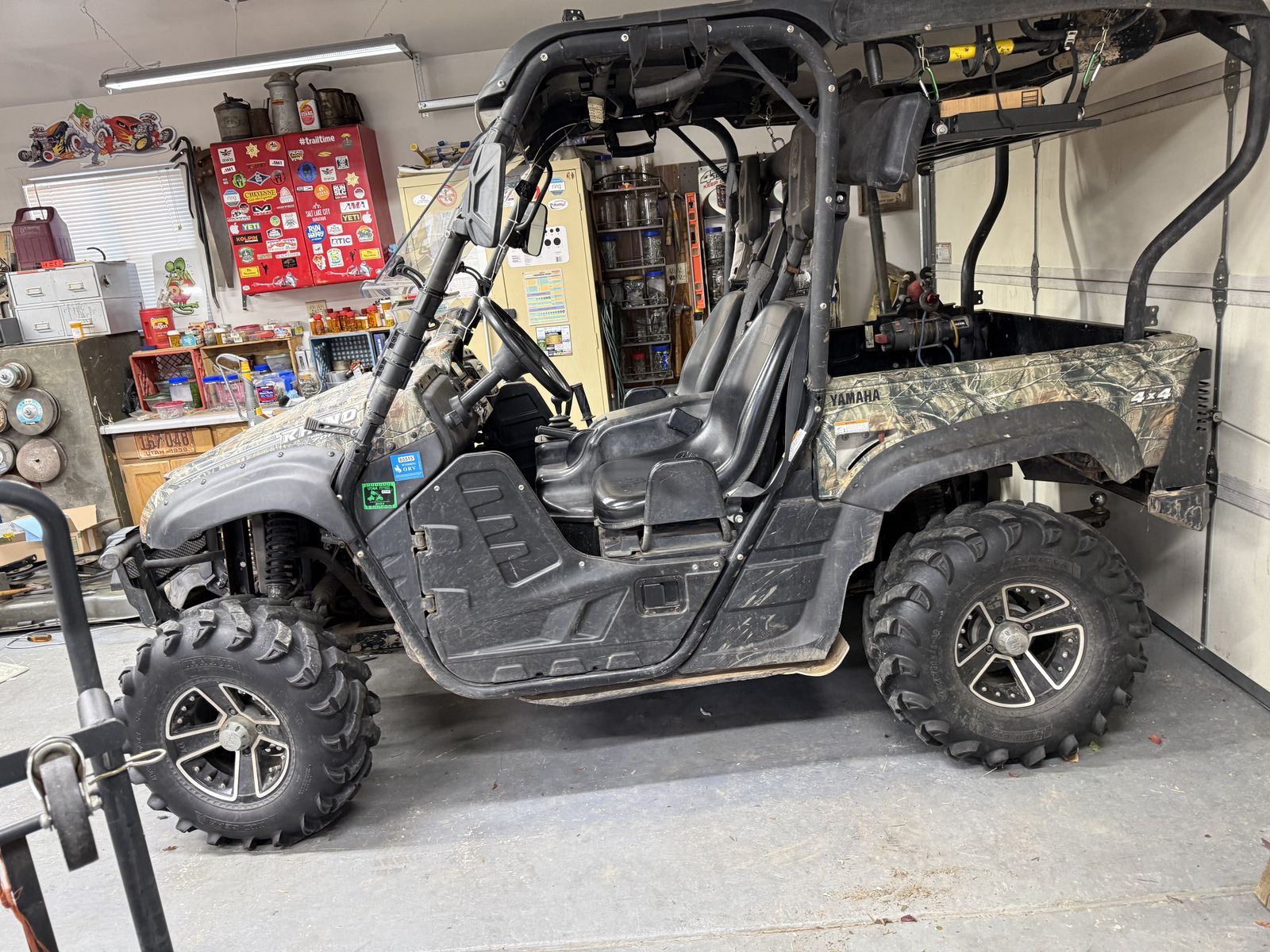 YAMAHA RHINO 700 FI, Camouflaged,Good Tires, Battery is Good, New Belt and Clutch Serviced,, RUNNING GREAT!! Has been Serviced every Spring and Fall. Has aWinch mounted in the Bed that can be used Front or Rear. Has extra Tools & Accessories that are in a Toolbox underneath a seat. Full Skid Plate that covers bottom. Full coverage over top, a Very Nice Windshield, mirrors on both sides, LED LIGHTS, Front and Rear. Have a Clear Title, Owners Manual & CLYMER YAMAHA RHINO repair book. Only $4700.
