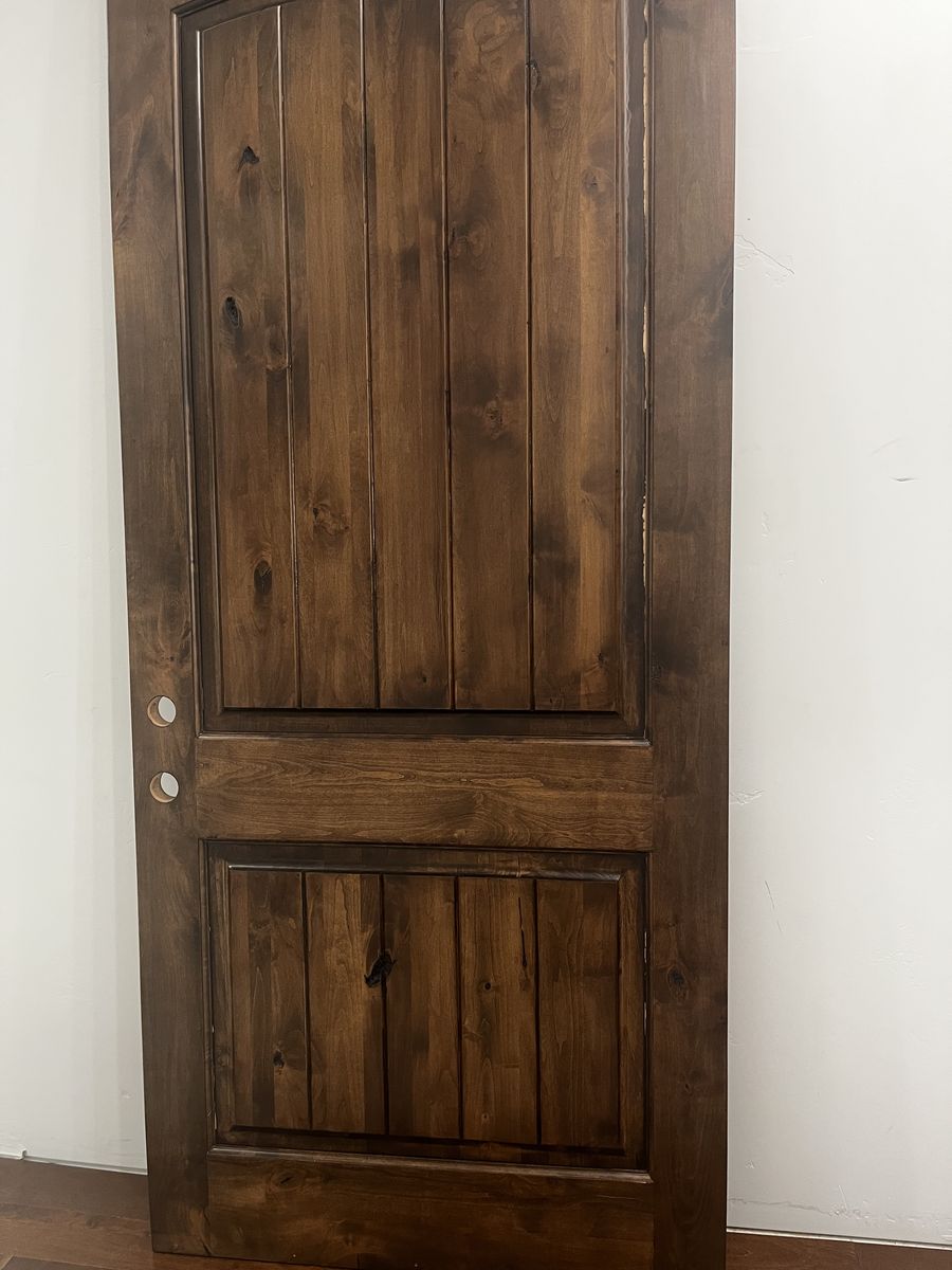 VenmoKrosswood door stained Right Hand 3 ft 6 by 8ft with the accessories to hang it .