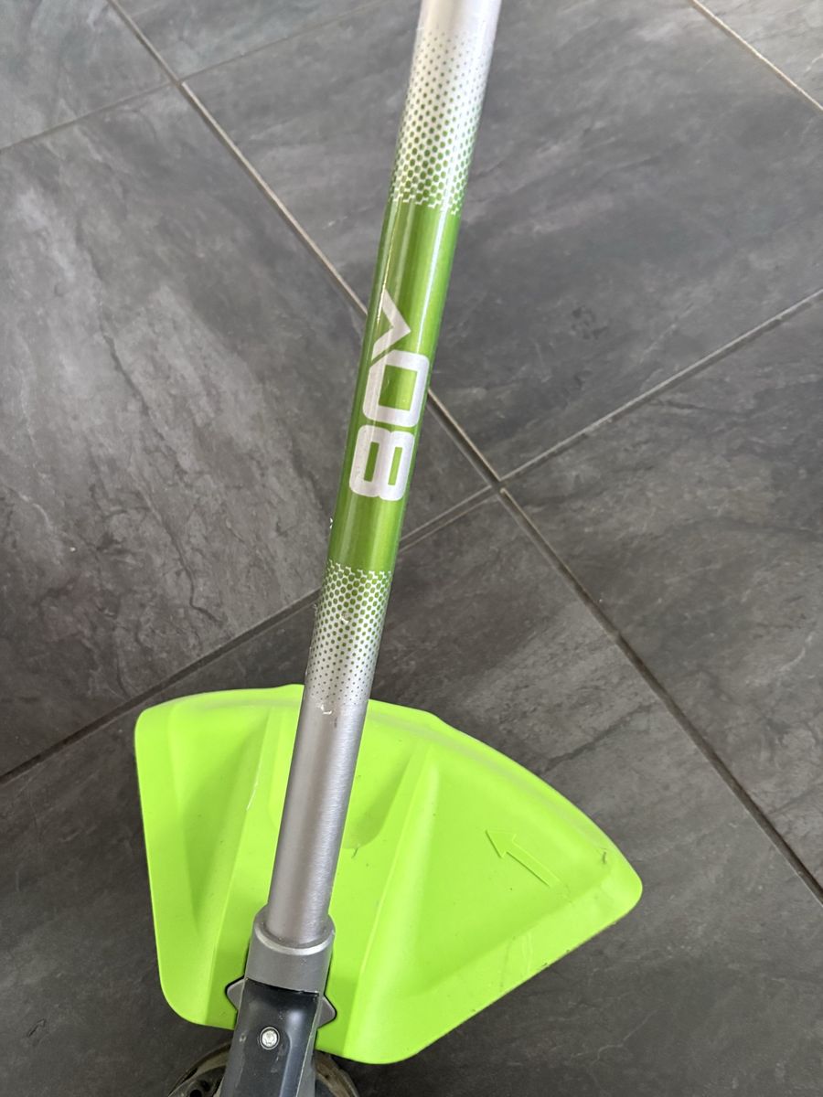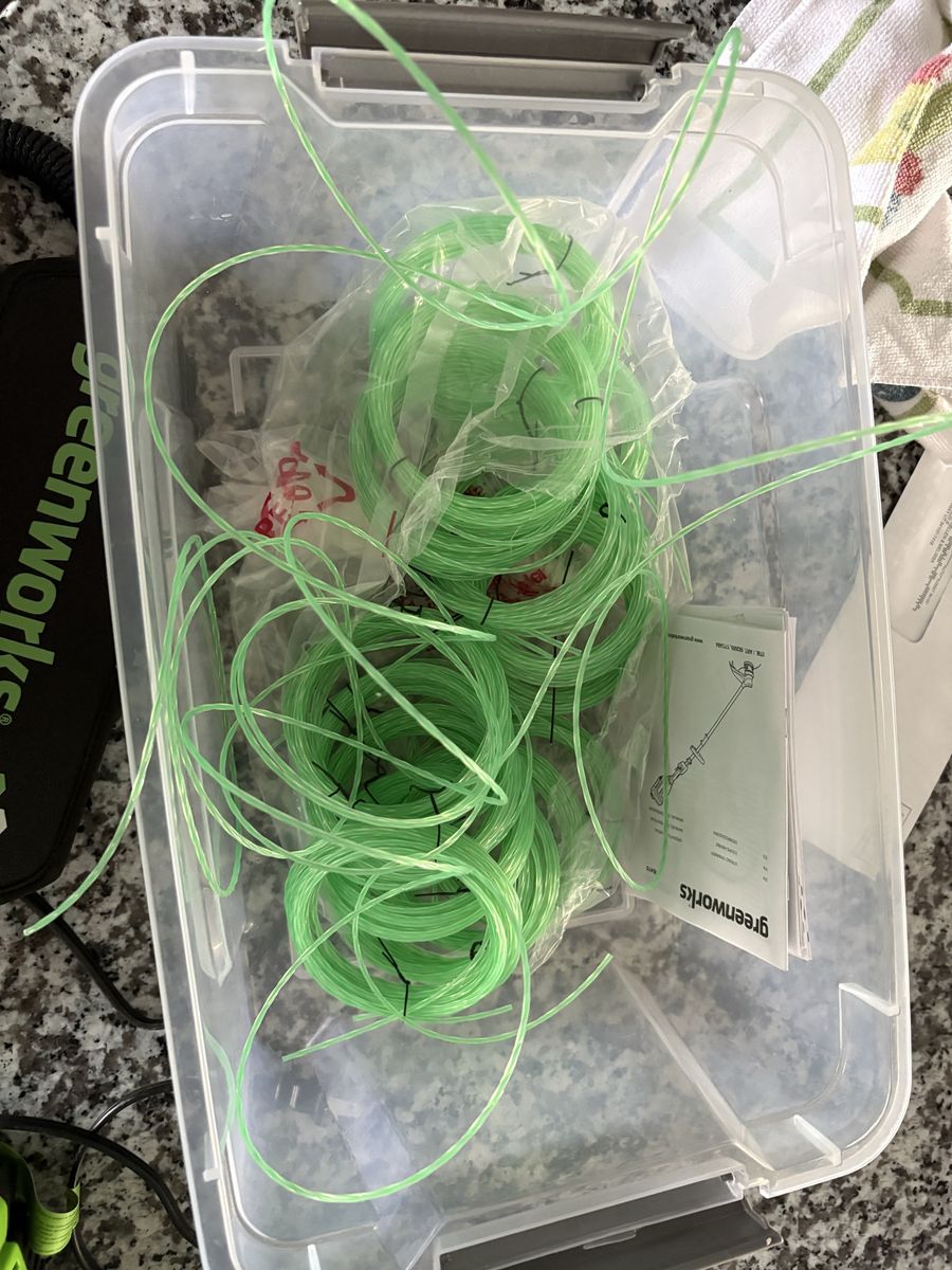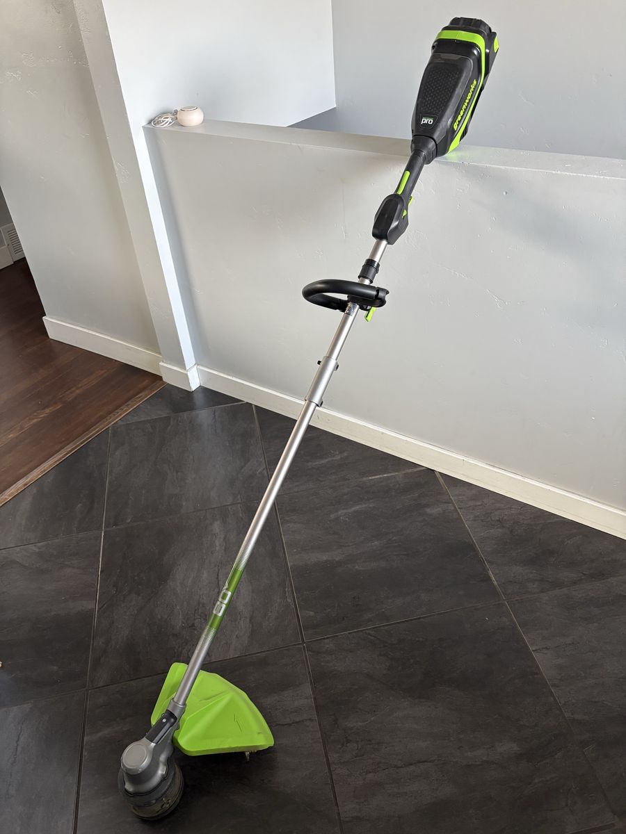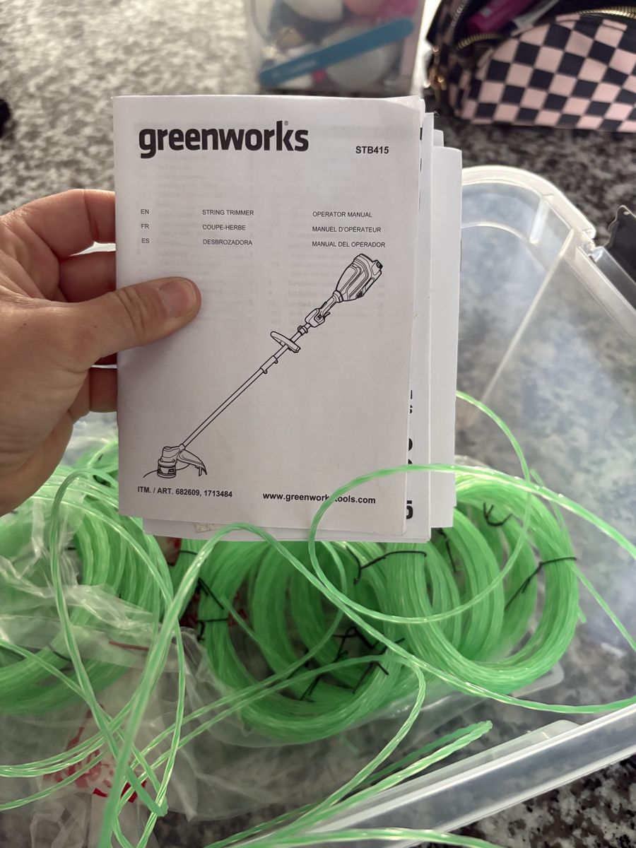 I got this last summer and used it maybe 5 times. It’s a beautiful machine, works great, it is just too big for me it’s basically brand new. Comes with everything! String, strap, instructions, battery, battery charger.