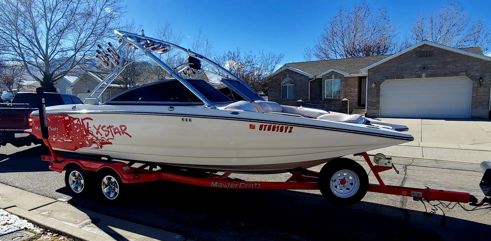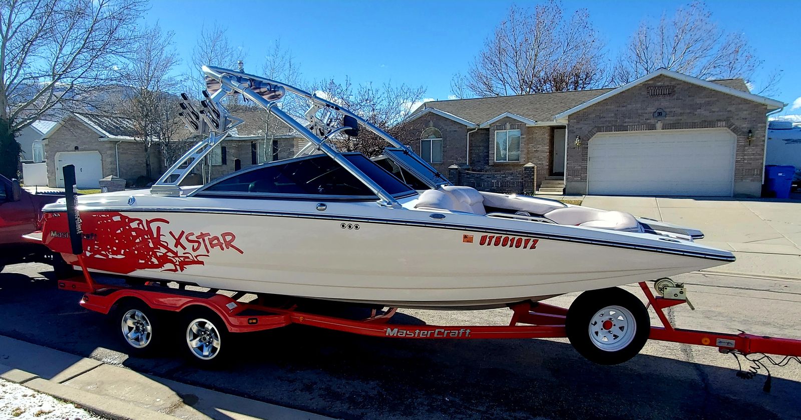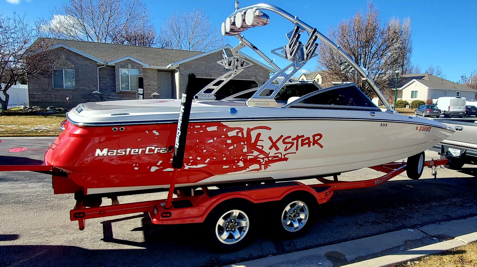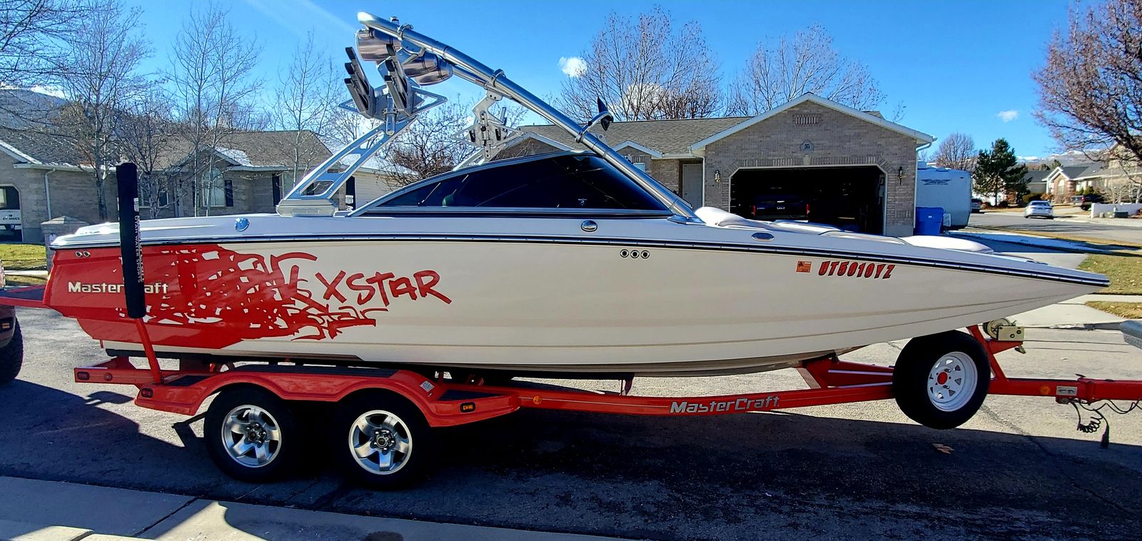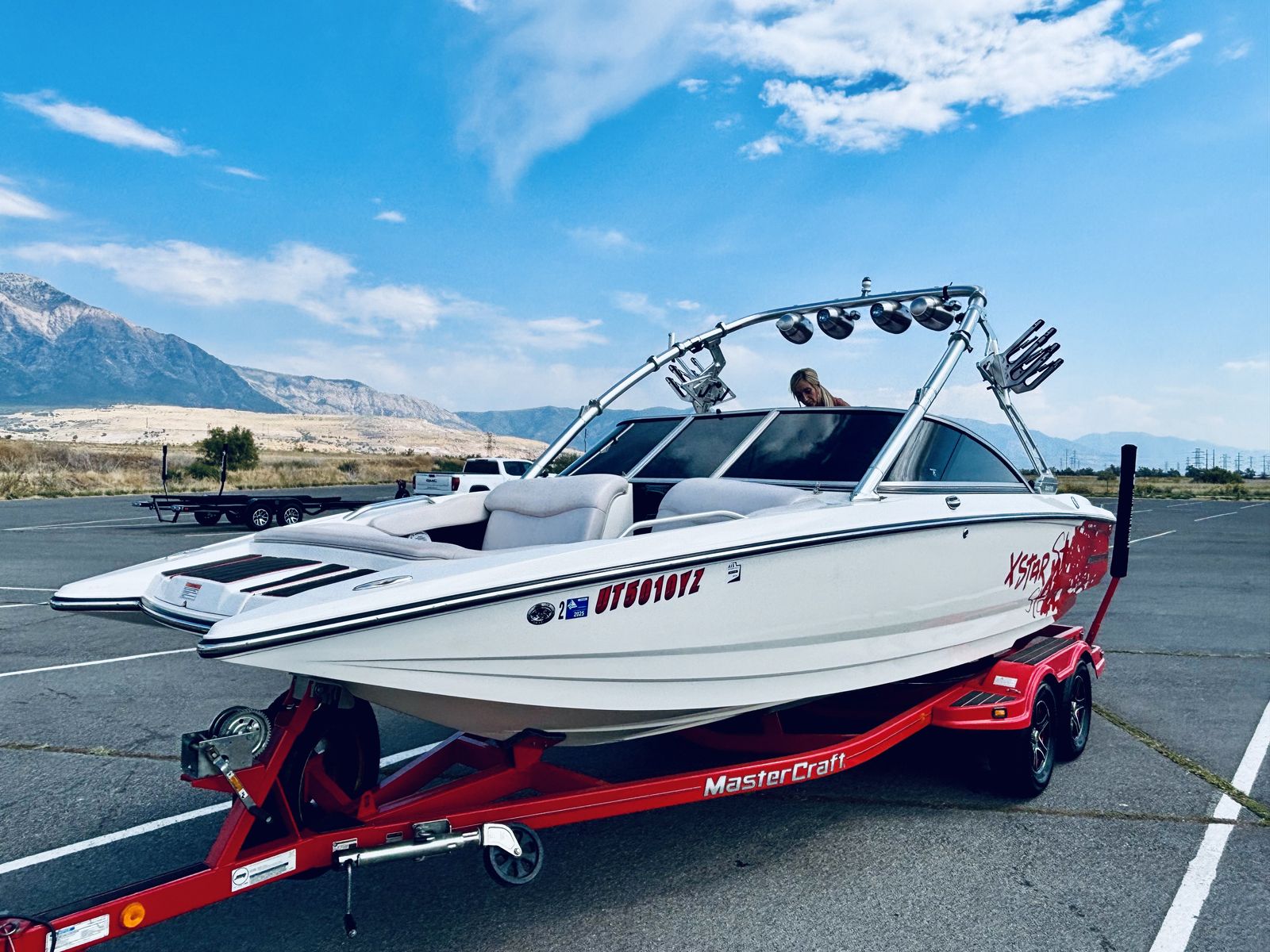 Well this is a bittersweet sale…We have a 2006 meticulously kept MASTERCRAFT X-STAR with 530 ish hours. Probably the cleanest and most well maintained boat 06 out there. Obviously it will have a little thing here or there but for the most part she is gorgeous inside and out. She is for sale because we decided on a pool for our family which will work better for us, but we will miss the lake and those memories, but excited for our new adventures. This a 22.5 foot wakeboard/surf boat. It does have ballast tanks and also extra fatsacs for the back. Beautiful white, gray, black and red interior, no holes. Heater, JBL sound system with 4 tower speakers. 2 new batteries, surfboards and wakeboard can be included with purchase price. After market wheels, tires have tons of life left. Removable swim deck if you need extra room to park in the garage. Only issues because of age were a couple sensors that Mastercraft took care of, new impeller end of last year. Call or text Chad for more info or questions. Please no low ballers.